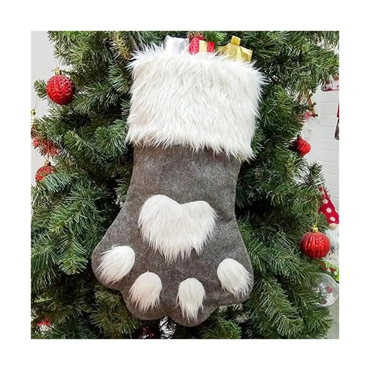 SherryDC Calcetines de Navidad con diseño de pata de gato para perros y gatos, calcetines colgantes de felpa para decoraciones navideñas grande18 pulgadas, blancogris