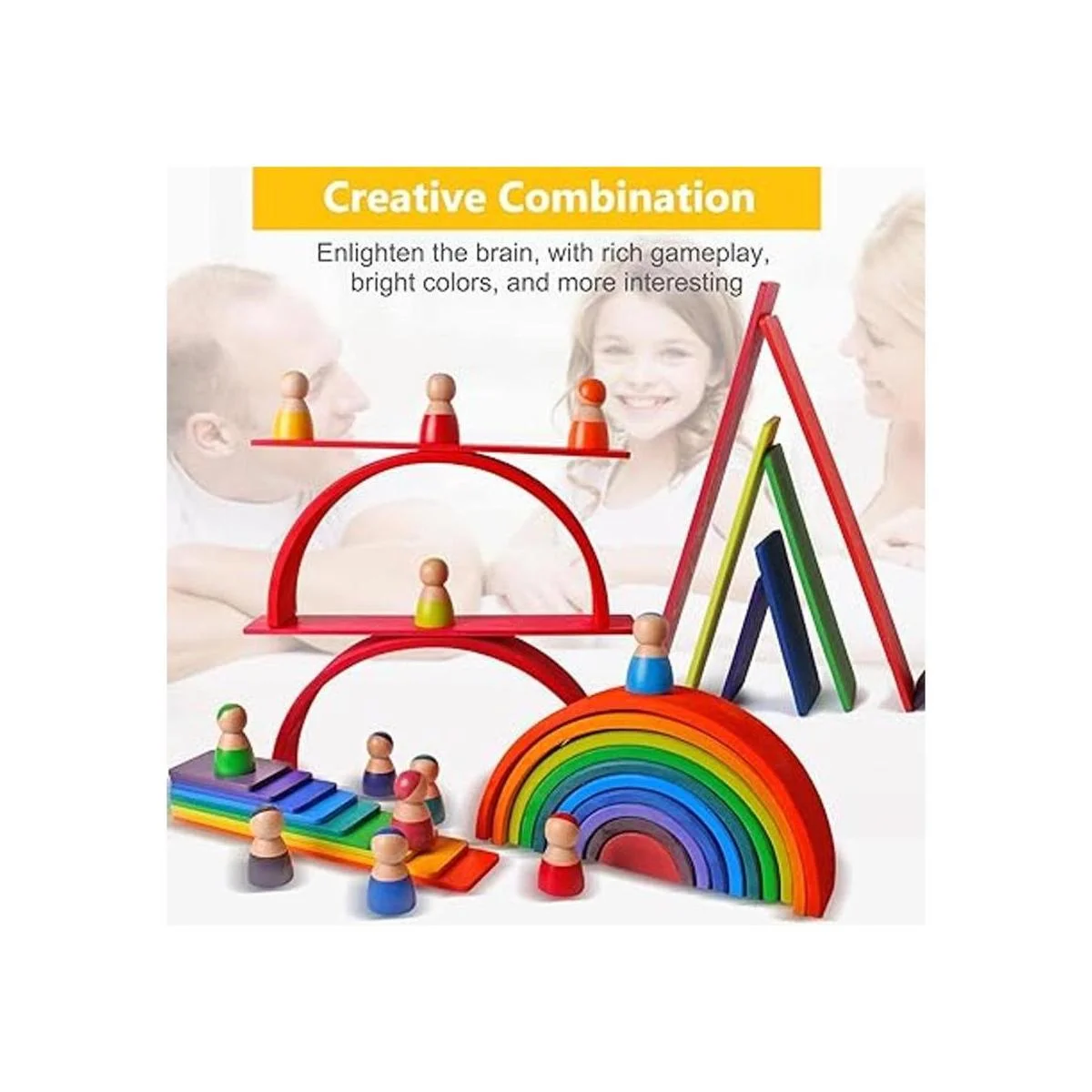 Juguetes abiertos: se puede combinar con otros juguetes de arco iris, como muñecas, bloques de arco iris, menisco arcoíris, etc., para crear escenas como puentes, casas, camas, calles, etc. Usa tu imaginación Un juego de simulación adecuado para una variedad de soluciones diferentes.