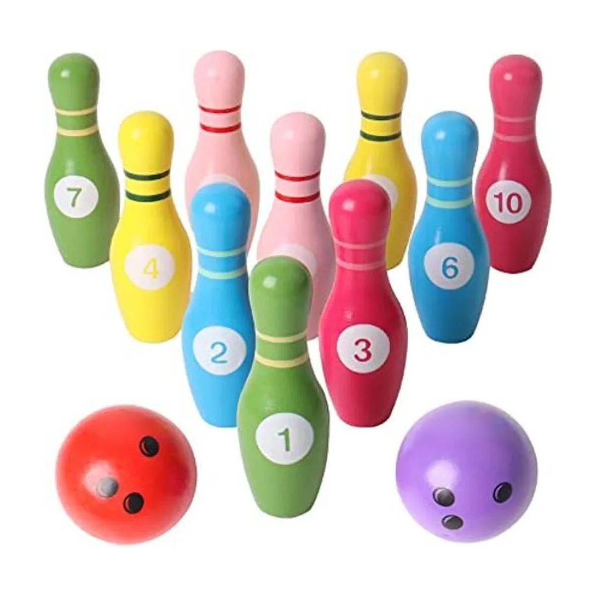 Juego de bolos de madera: utiliza madera de alta calidad y pintura segura. En comparación con las bolas de bolos de otros materiales, las bolas de bolos de madera son más realistas e interesantes. Es útil cultivar el interés y el talento de los niños en los deportes de bolos, y al mismo tiempo lograr el propósito del ejercicio físico y mejorar las habilidades de vida.