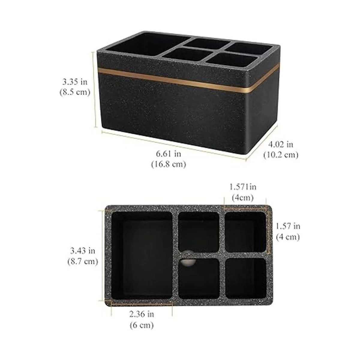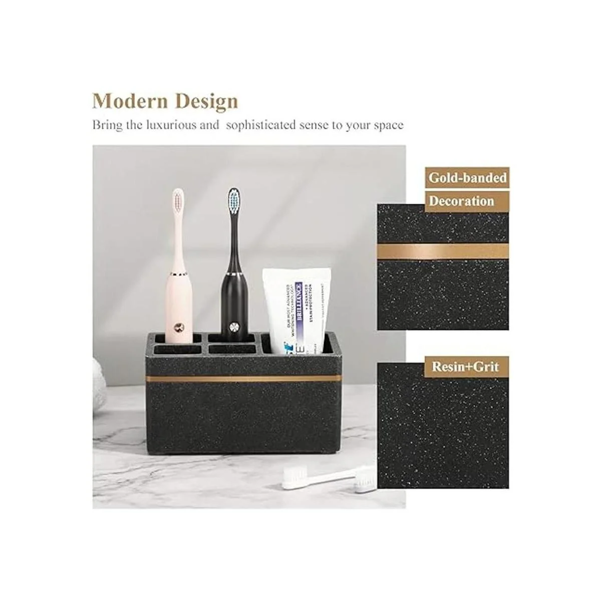 Shinowa Soporte para cepillo de dientes de resina, 5 ranuras, soporte para cepillo de dientes eléctrico higiénico, organizador de soporte para cepillo de dientes, pasta de dientes, maquinilla de afeitar, grava negro