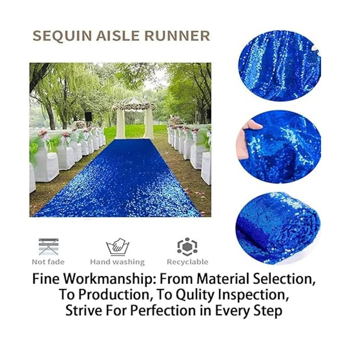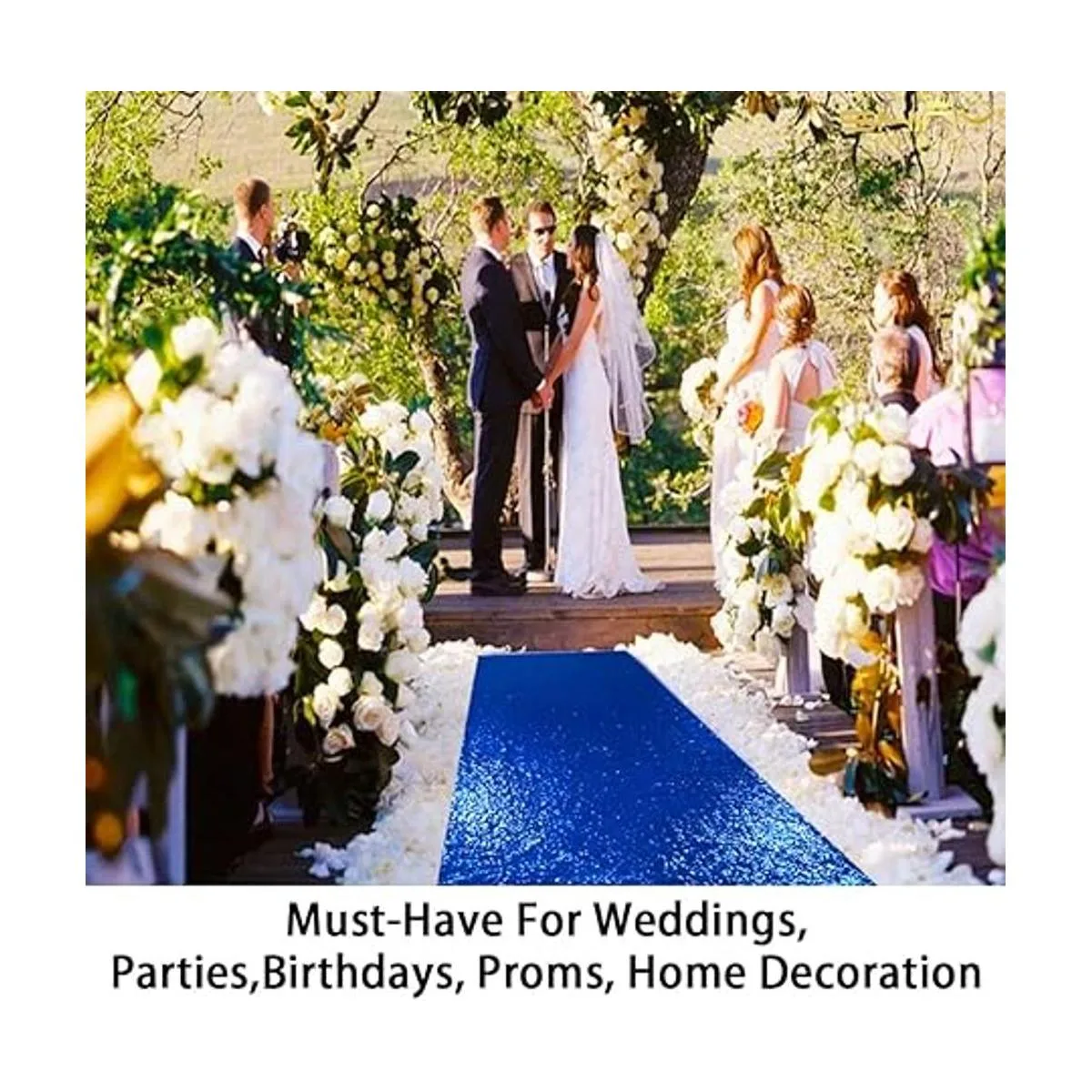ShinyBeauty Camino de pasillo de boda de 3 pies x 15 pies, color azul real, con lentejuelas brillantes para decoración de ceremonia de boda, fiesta de niños