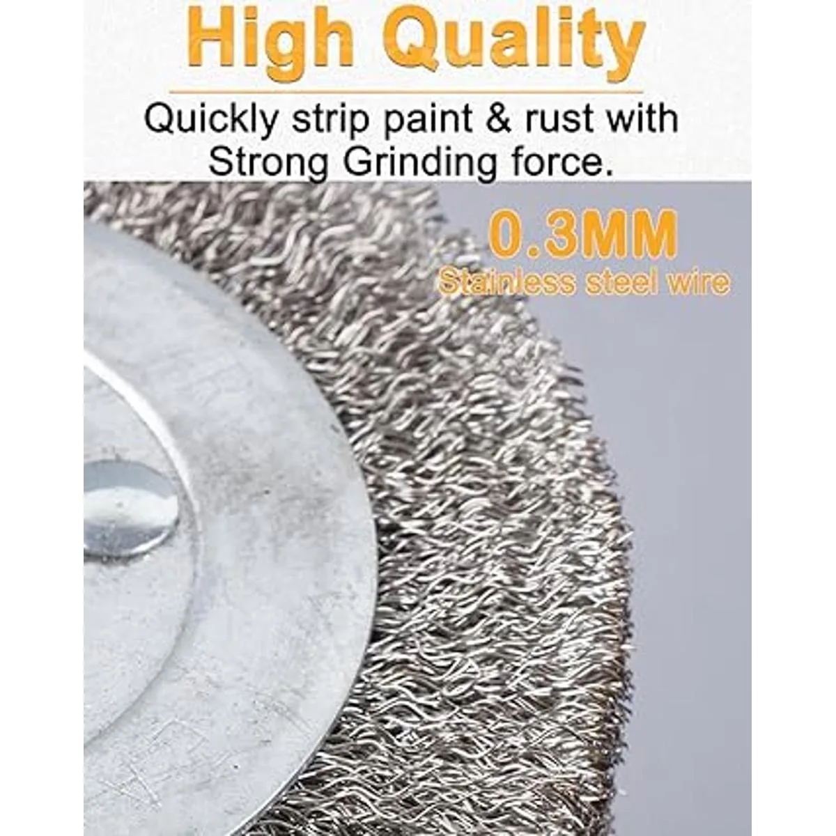 Alambre de acero inoxidable de alta calidad: hecho de alambre de acero inoxidable distribuido uniformemente de 0.012 in, las herramientas de eliminación de pintura pueden pelar rápidamente la pintura y el óxido con una fuerte fuerza de corte. Deja una superficie lisa, uniforme y clara.