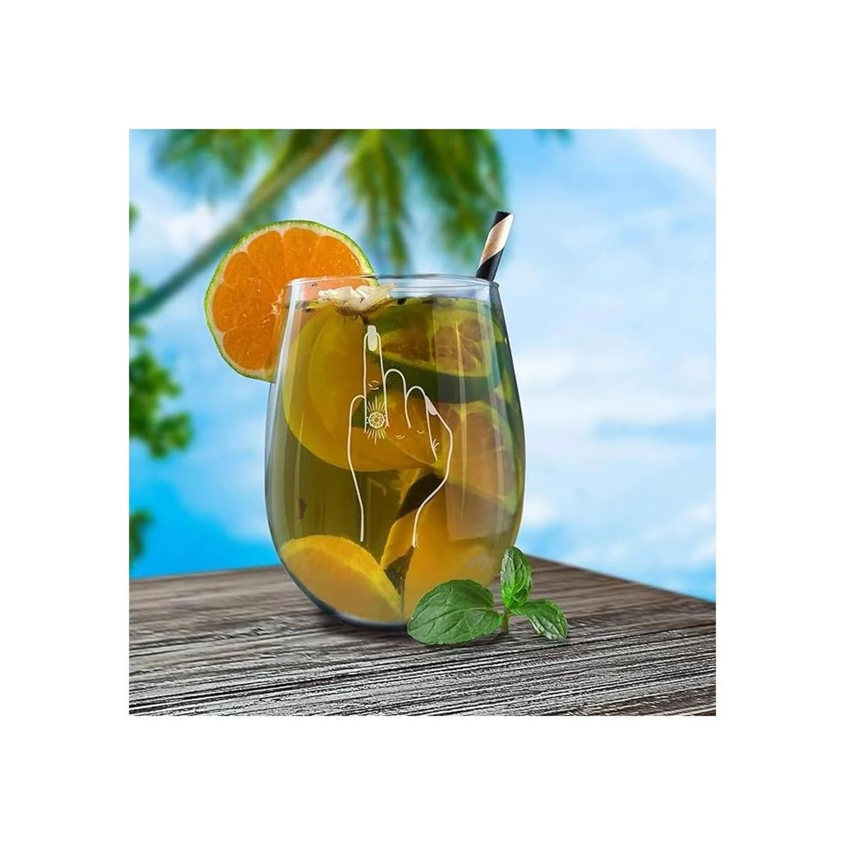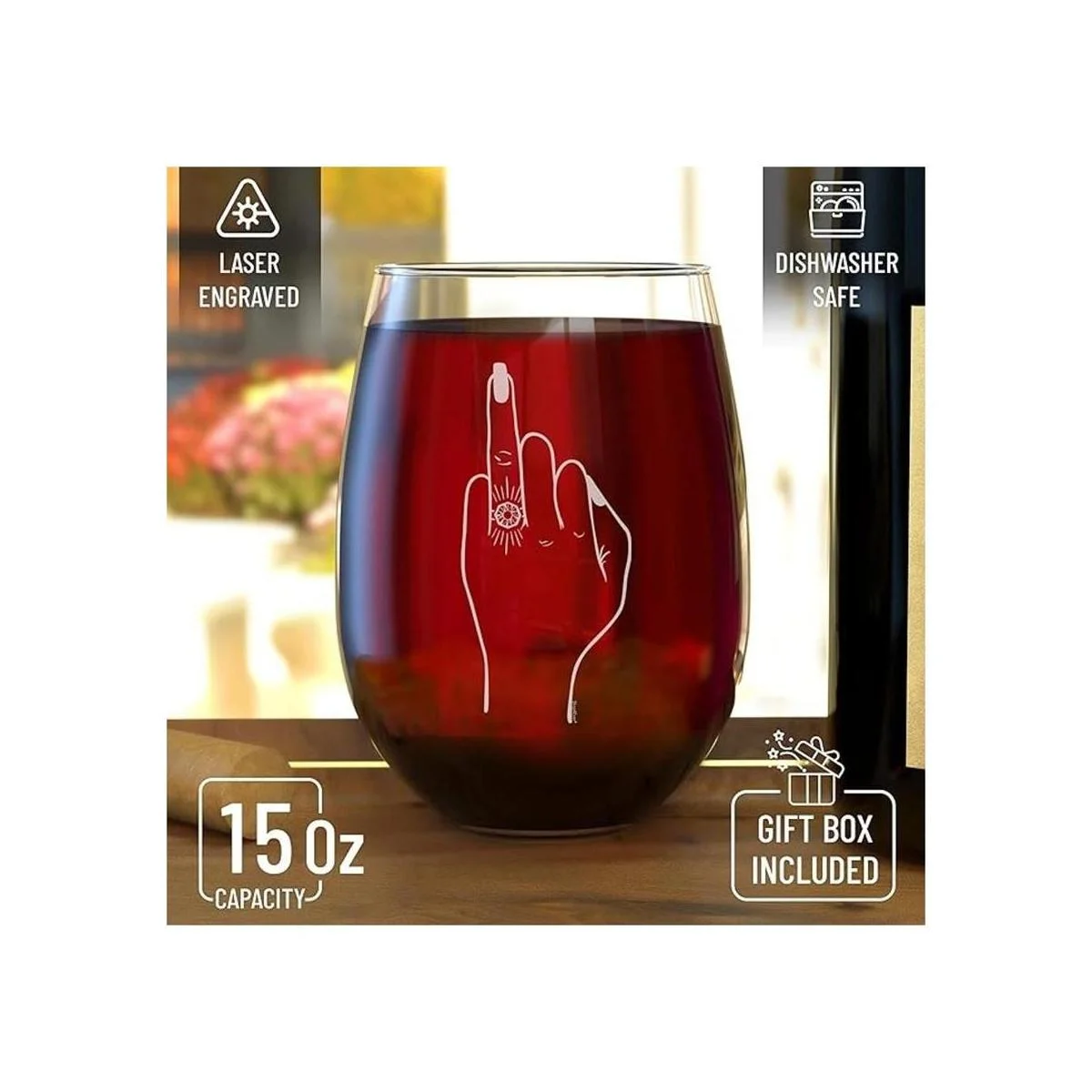 Copa de vino sin tallo de alta calidad. Diseñado y grabado con láser de forma permanente para un acabado cristalino de la más alta calidad. Cuenta con un diseño de base resistente y sin tallo para minimizar el riesgo de rotura. Forma ergonómica que muestra un borde estrecho y silueta elegante para un agarre fácil y cómodo.