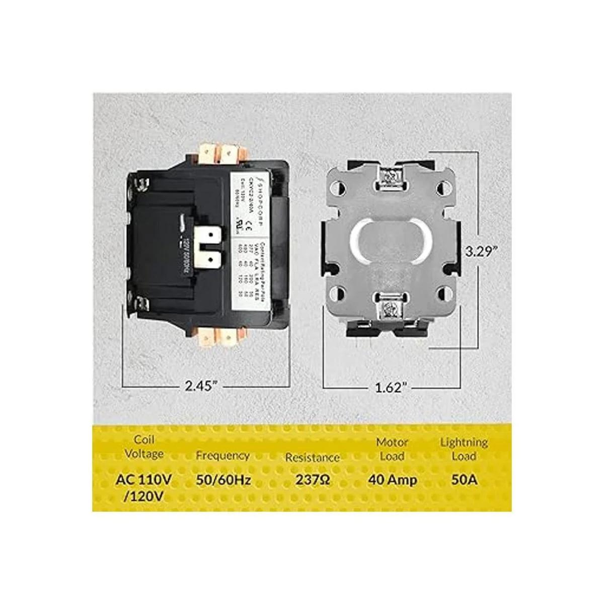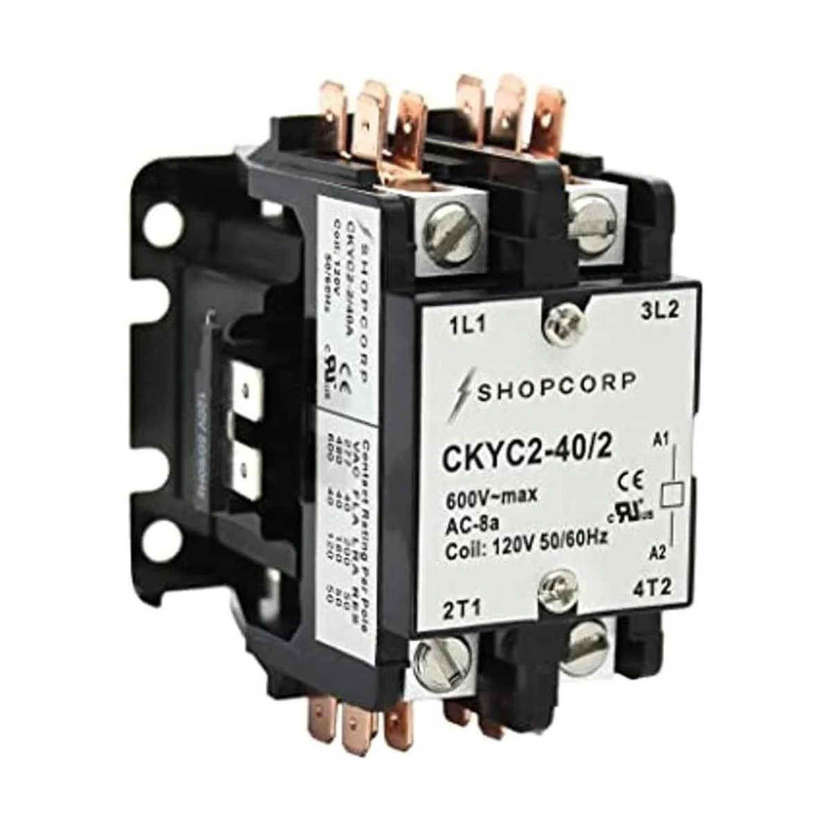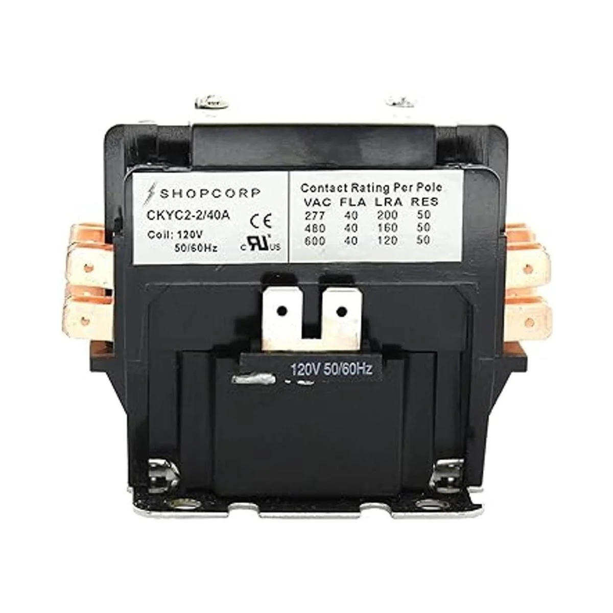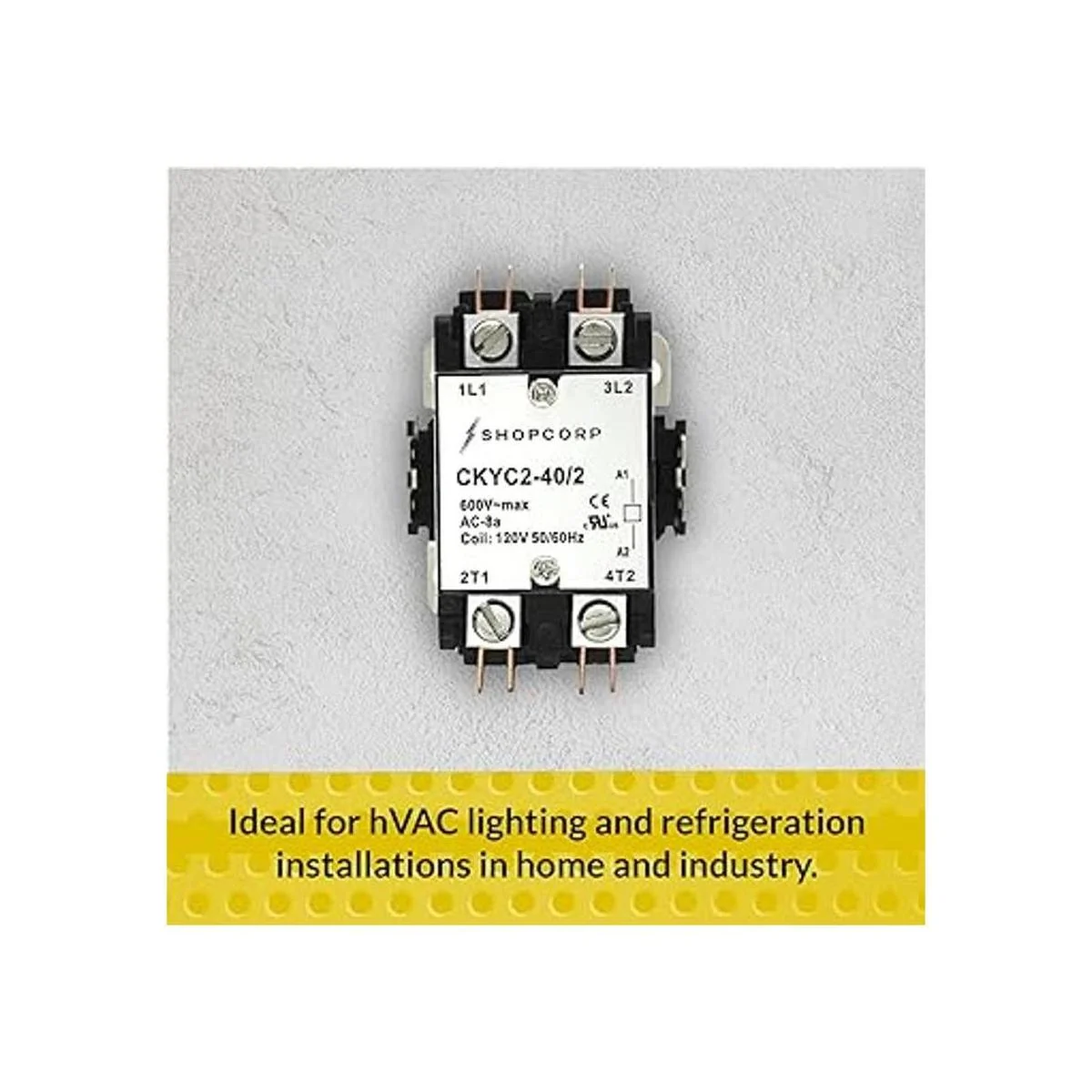 Shopcorp 40 amperios 2 polos normalmente abiertos, 600 V propósito definido, contactor magnético HVAC resistente, bobina de 110120 V, carga del motor 40 A y carga de iluminación 50 A