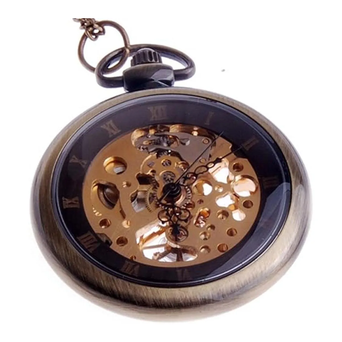 ShoppeWatch mano viento Esqueleto Mecánico Reloj de bolsillo Numeral Romano estilo Steampunk con cadena PW12