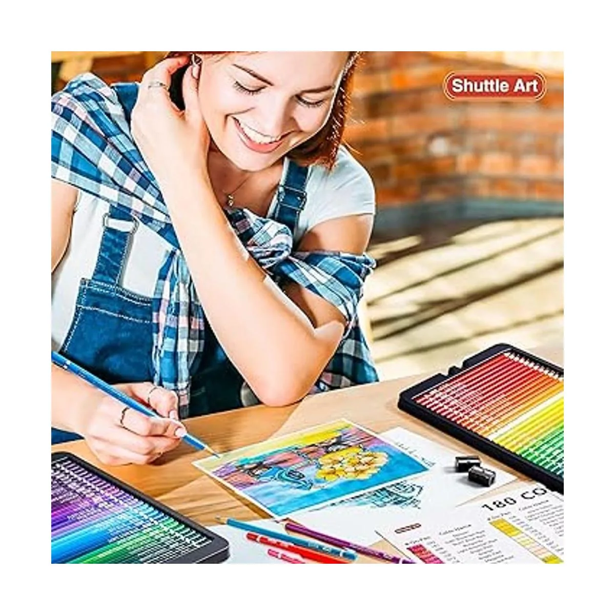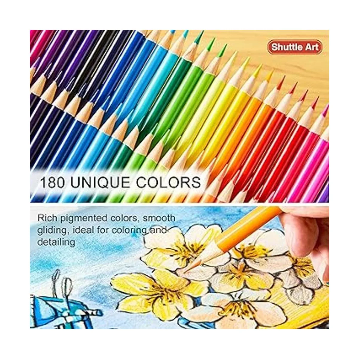 Shuttle Art 180 lápices de colores, juego de lápices para colorear de núcleo suave con 4 sacapuntas, lápices de color profesionales para artistas, niños, adultos, colorear, bocetos y dibujos
