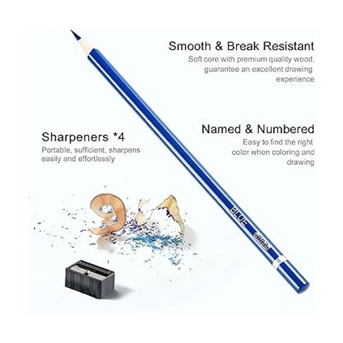 Pigmento rico y resistente a la rotura: los cables suaves escriben suavemente y colocan colores vibrantes, que son fáciles de mezclar, capas y sombrear. El núcleo de plomo grueso y de alta calidad protege contra roturas frustrantes durante el uso general y el afilado, lo suficientemente resistente para un uso prolongado.