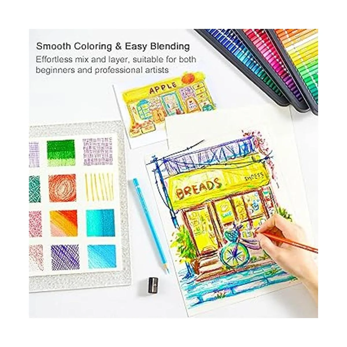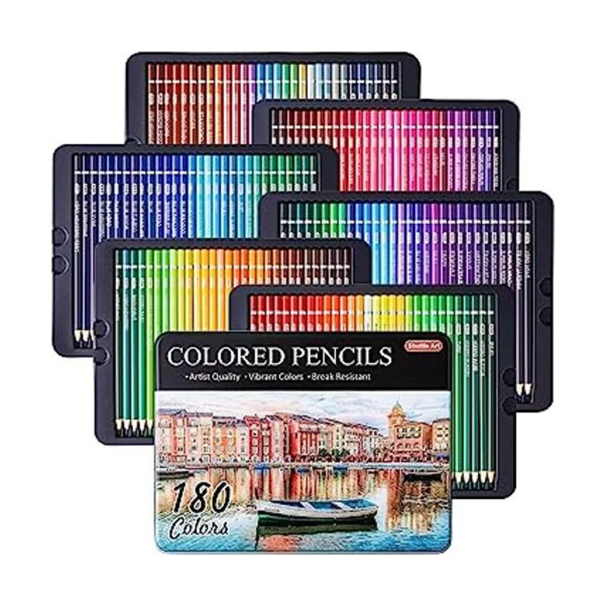 180 colores vibrantes: el juego de lápices de colores Shuttle Art de 180 colores contiene 180 lápices de colores vibrantes de núcleo suave y 4 sacapuntas en una caja de metal resistente, perfecto para niños, adultos, artistas para colorear, dibujar y dibujar. Aviso: los sacapuntas se almacenan en la parte inferior de la caja de metal, retira todas las bandejas de lápices para sacarlos
