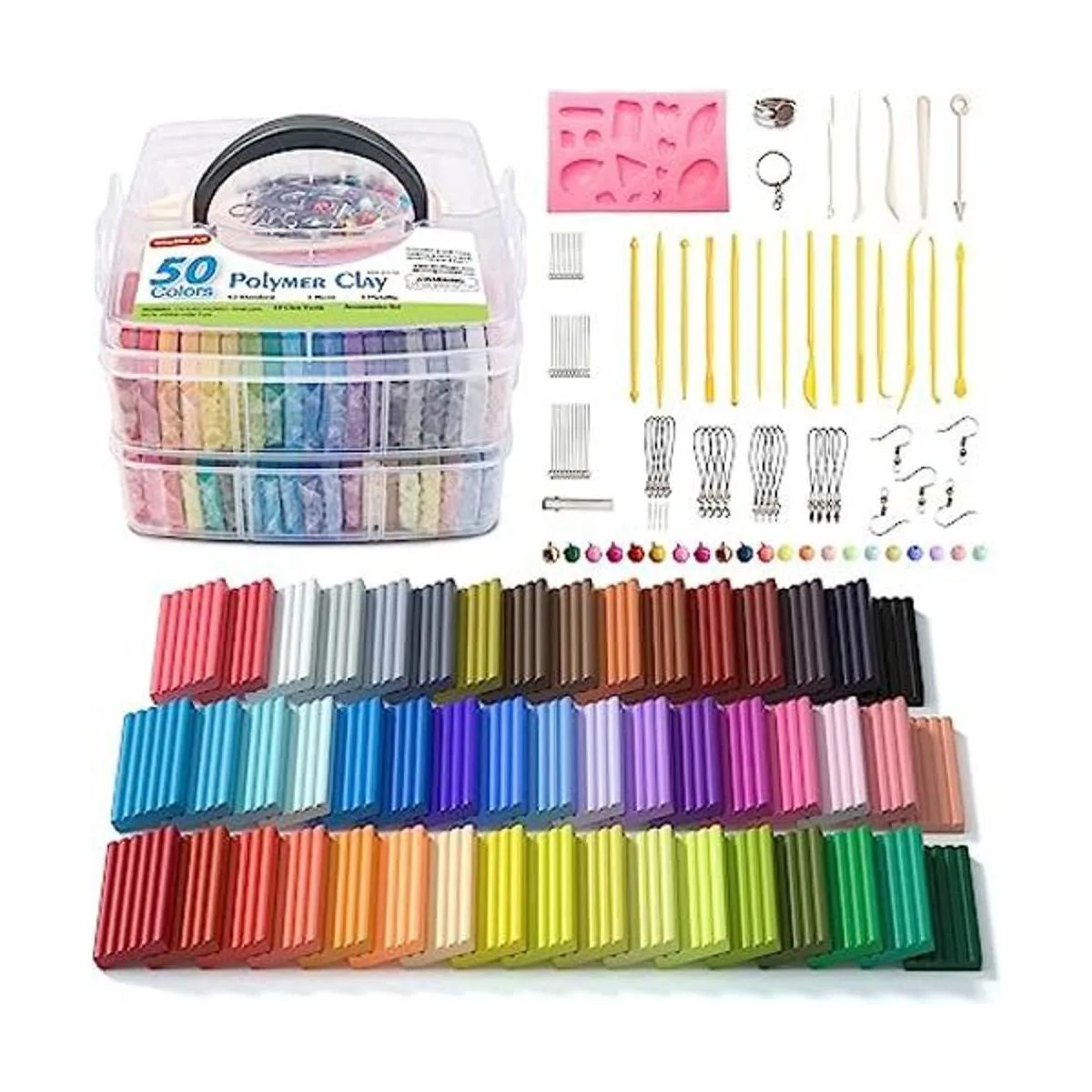 Shuttle Art Juego de arcillas de polímero para modelar al horno, 50 colores 1.2 oz, bloque suave, antiadherente, no tóxica, incluye 19 herramientas y 10 tipos de accesorios, regalo ideal para niños total 4.1 libras