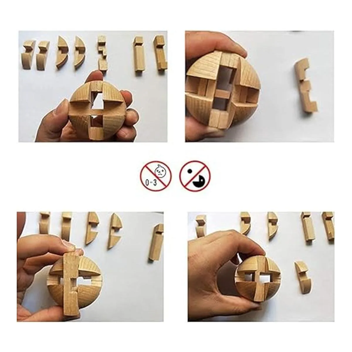 Shuyue Rompecabezas de madera hecho a mano con bola mágica para cerebro, juguete inteligencia, esfera, rompecabezas para adultos