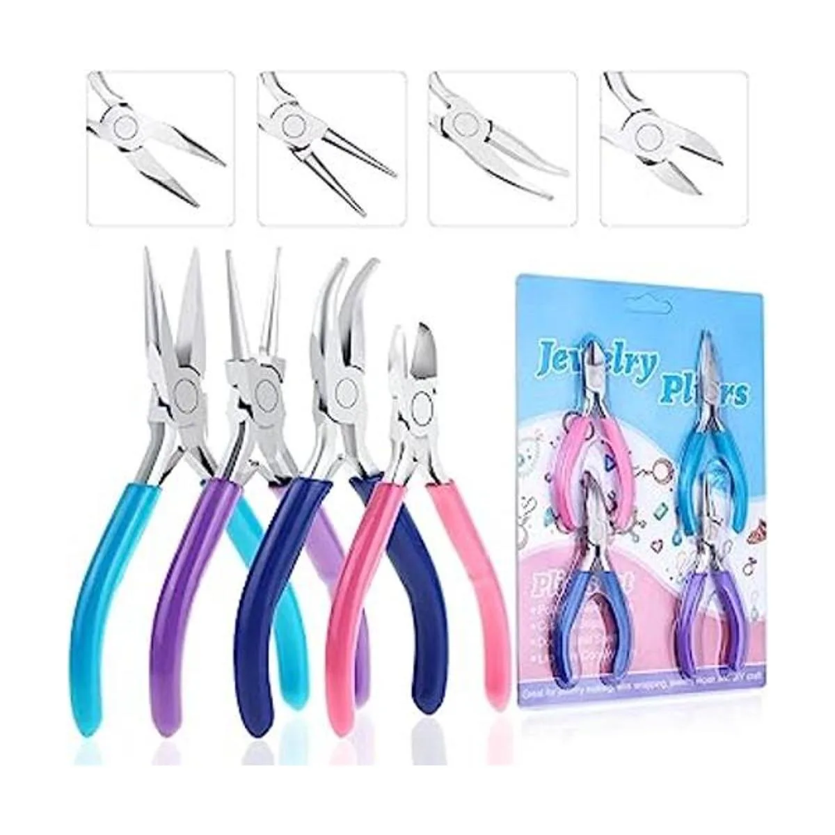 Shynek Alicates de joyería, kit de herramientas para hacer joyas con alicates de punta de agujaalicates de nariz de cadena, alicates de nariz redonda, cortadores de alambre y alicates de nariz doblados para manualidades, envoltura de alambre, suministros de fabricación de joyas