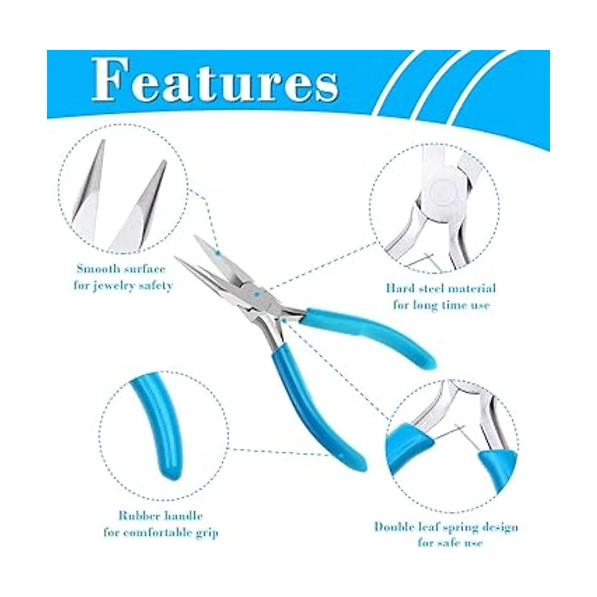 Diseño funcional: los alicates de punta redonda hacen que formen bucles y curvas. Los alicates de punta de aguja son versátiles para recoger la forma y sostener objetos. Los alicates cortadores de alambre son ideales para cortar a través de cables de templado duros. Los alicates de punta doblada se pueden doblar y alcanzar ángulos difíciles. Todos estos alicates de joyería están diseñados con resorte de doble hoja para un uso seguro