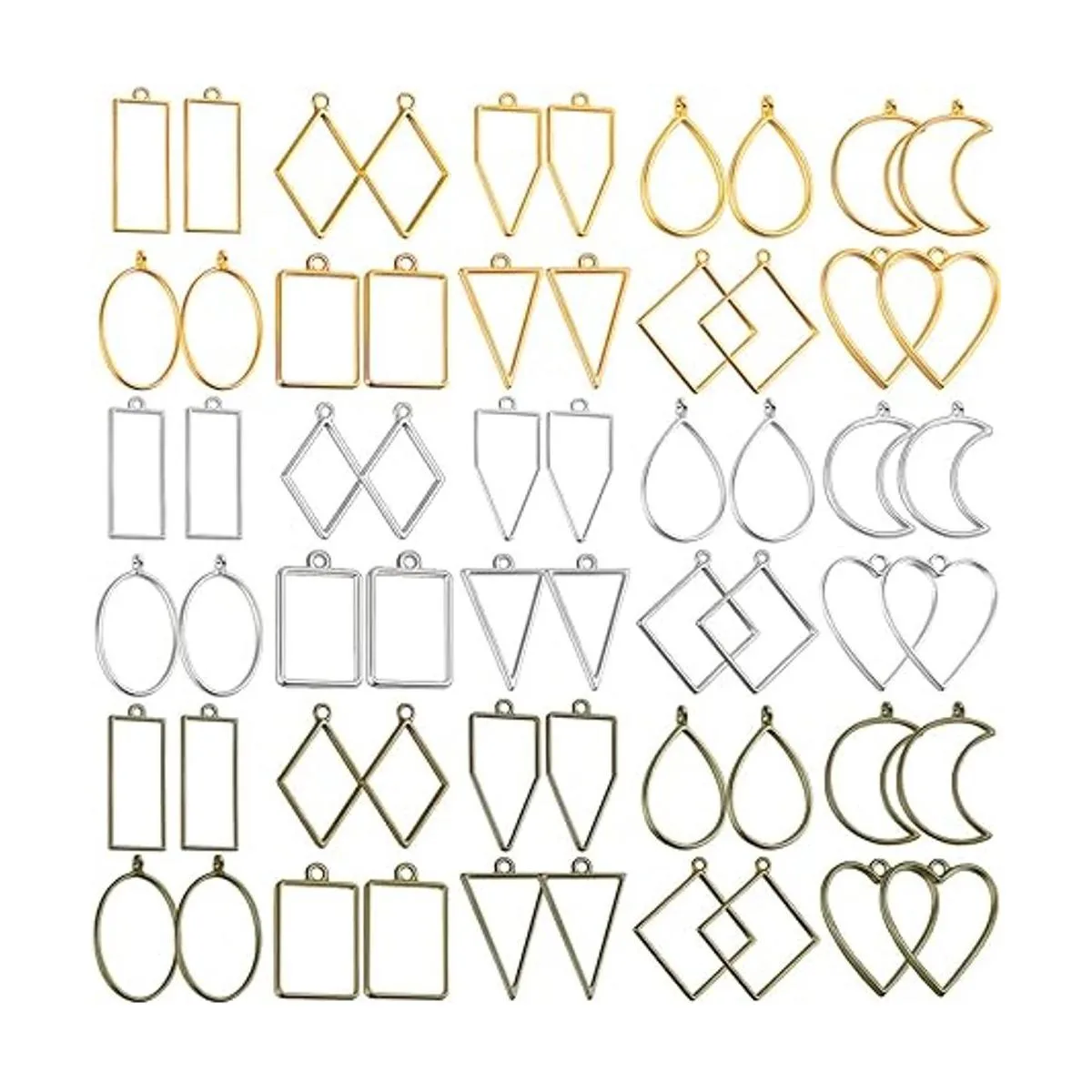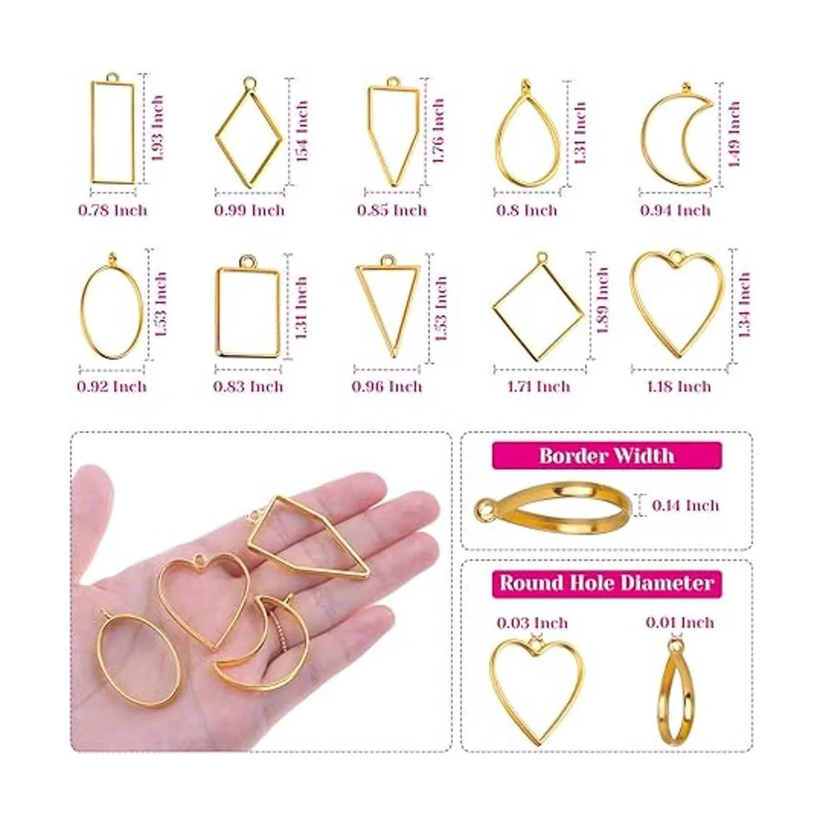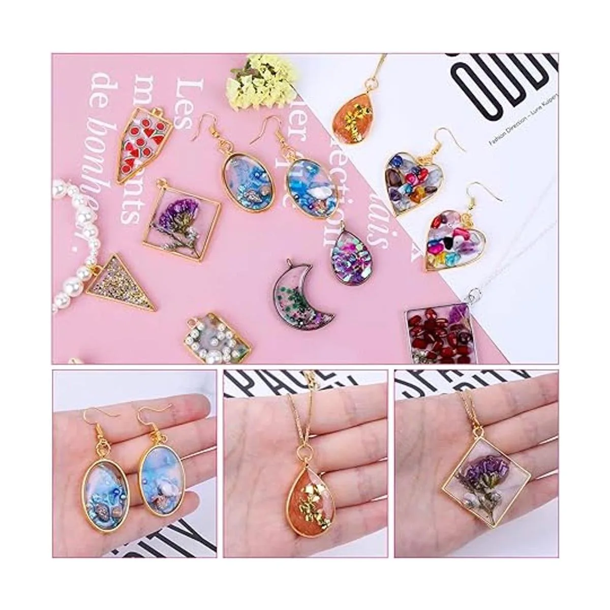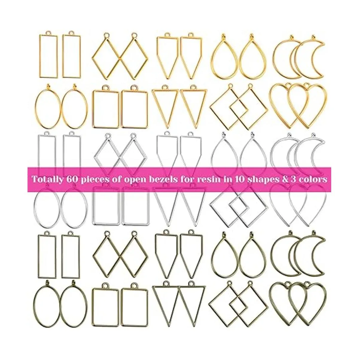 Shynek Biseles abiertos para resina, 60 colgantes de marco hueco de resina, biseles para manualidades, moldes de joyería para fundición de resina, collares, aretes, suministros para hacer
