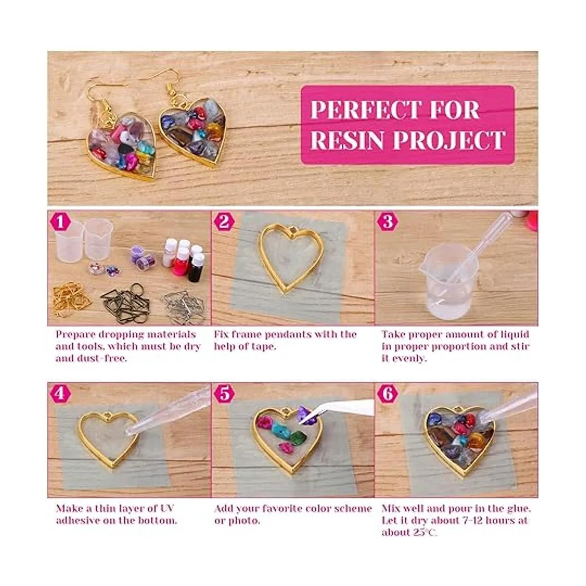 Kit de fabricación de joyas de resina: el kit de moldes de resina Shynek viene con 60 biseles en 10 formas geométricas huecas diferentes y 3 colores. Gran kit de resina para hacer joyas