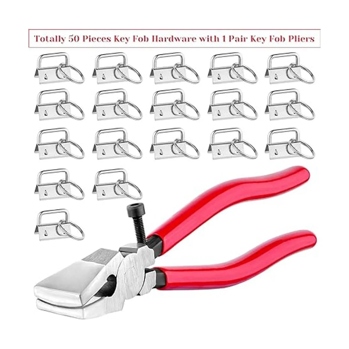 Shynek Juego de 50 piezas de accesorios para llavero de cordón de 1 pulgada con alicates, herramienta para llavero y abrazadera de muñeca