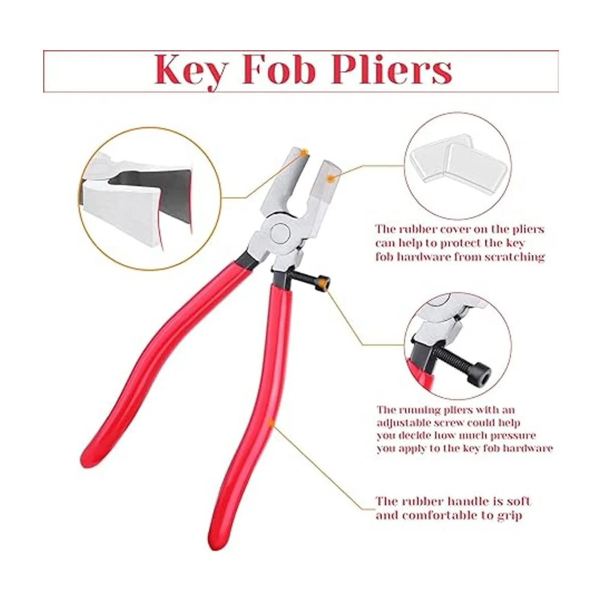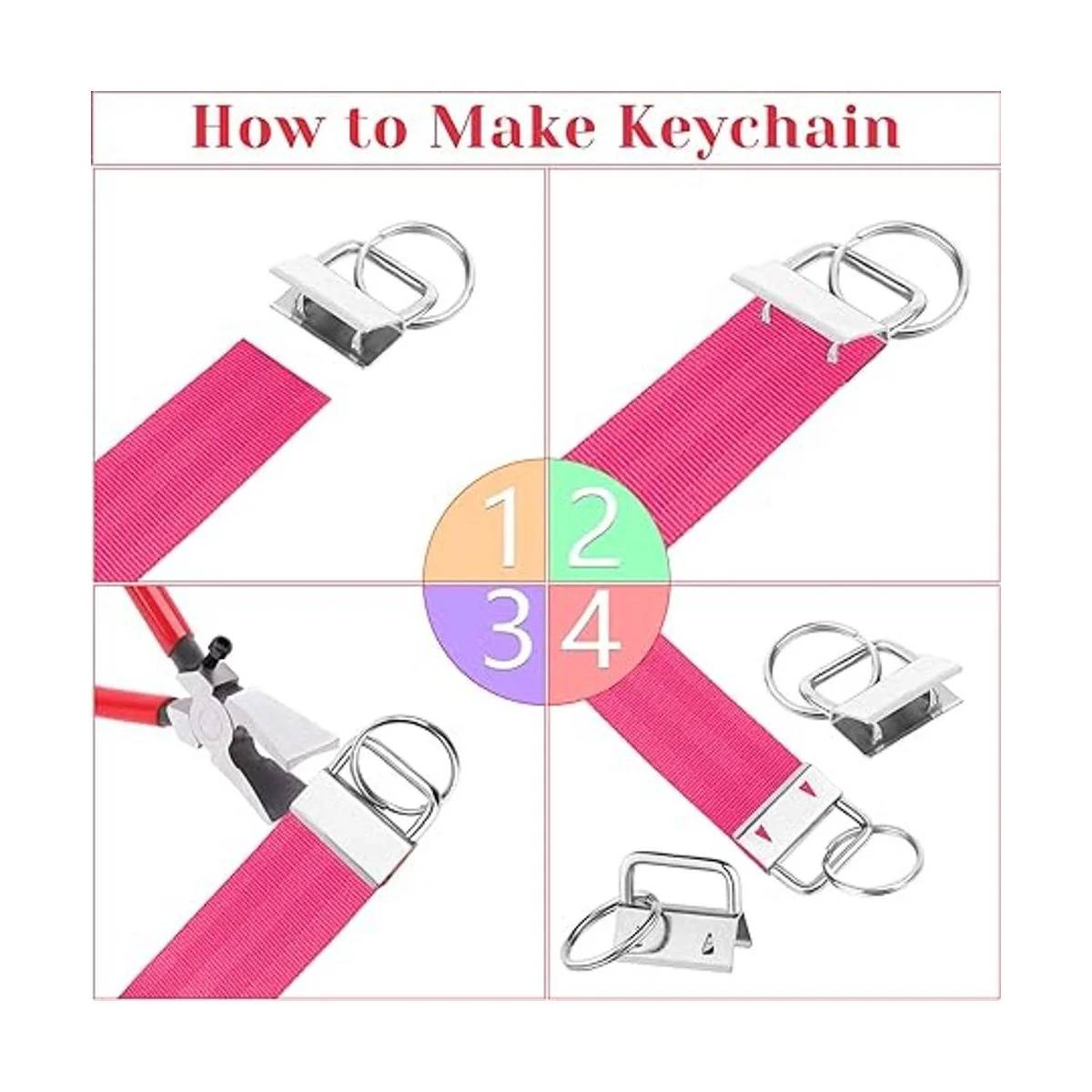 Amplia aplicación: el juego de accesorios para llavero con herramienta de hardware para llavero y hardware para llavero es perfecto para llavero de muñeca, cordones para llaves, llaveros y suministros para hacer llaveros, pulseras con tela, cinta, cincha, relieve.