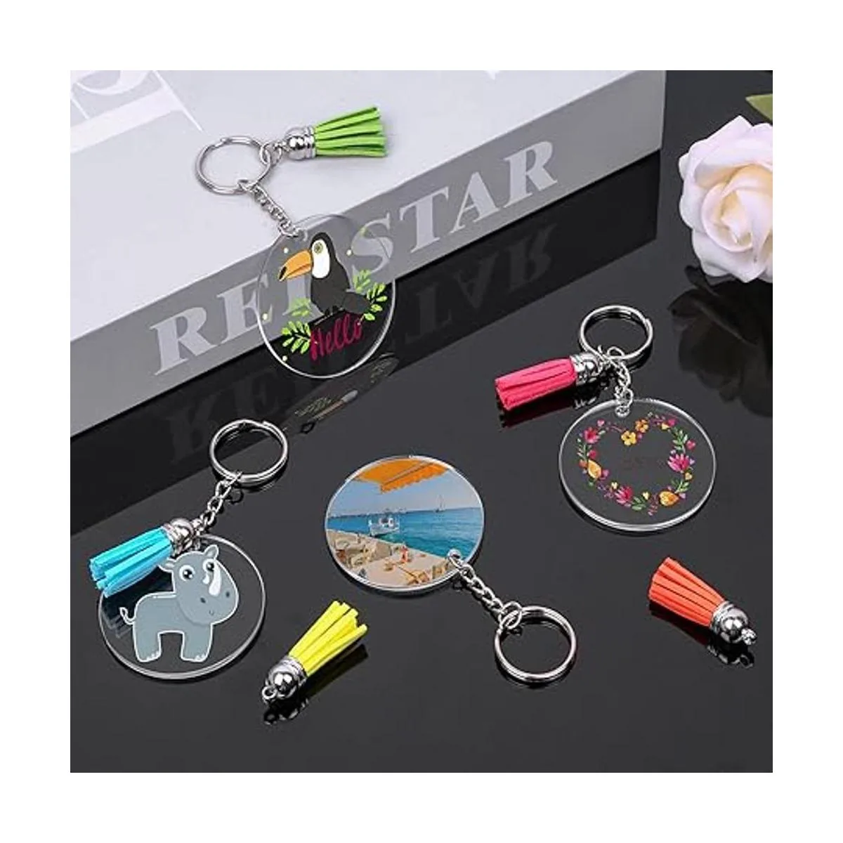 Llaveros en blanco de alta calidad: nuestros llaveros en blanco están hechos de material acrílico de alta calidad que es transparente y ligero, puedes trabajar fácilmente con ellos sin preocuparte por ningún tipo de grietas