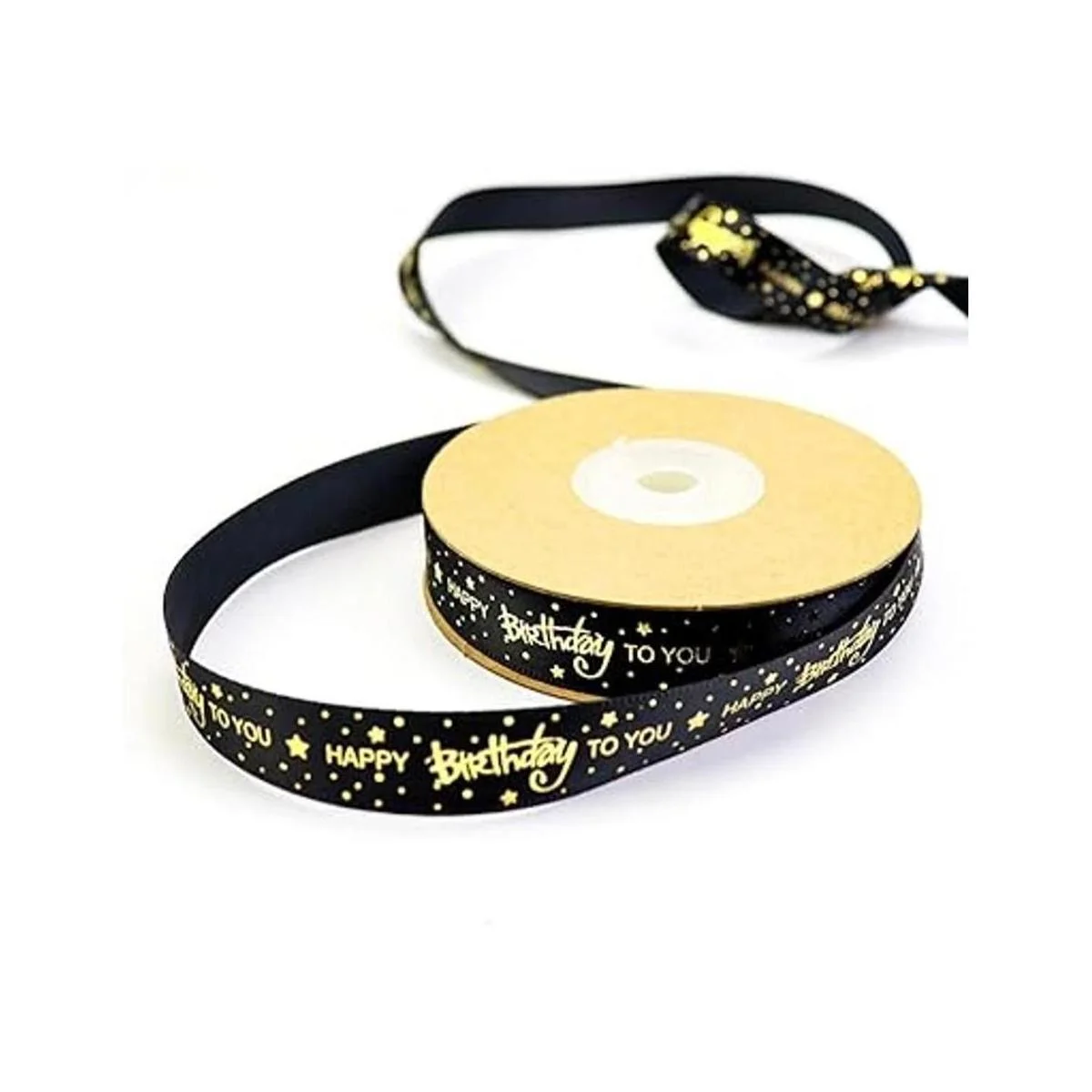 Sichou Cinta de cumpleaños Cinta de 58 pulgadas 20 yardas para manualidades, decoraciones de satén para corona hecha a mano, suministros de regalo de cumpleaños para fiestas negro