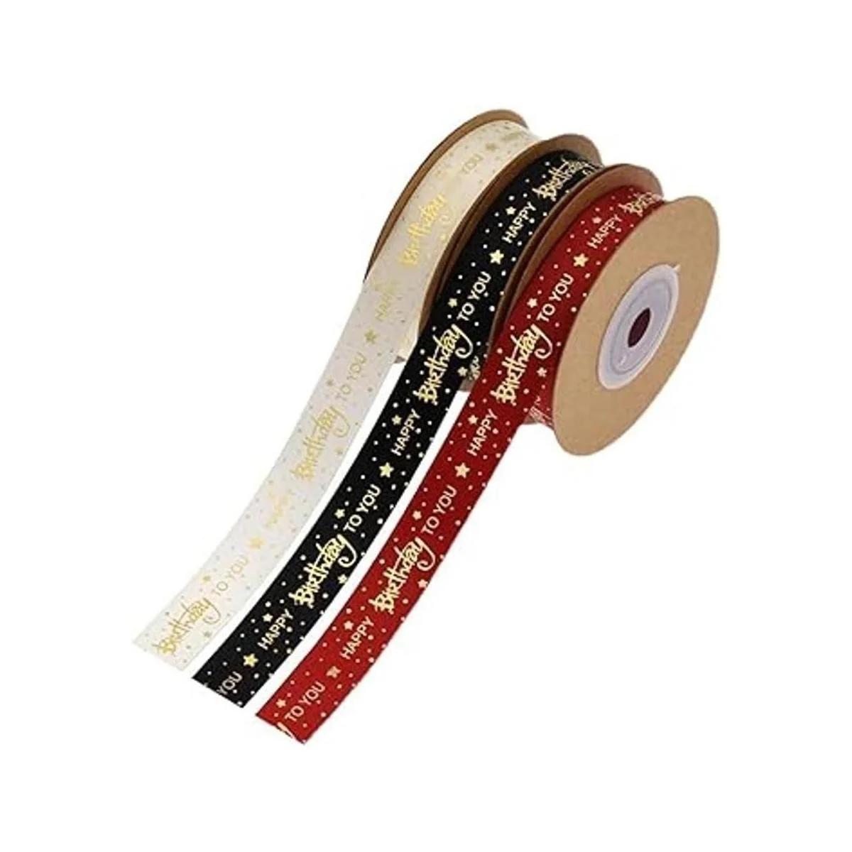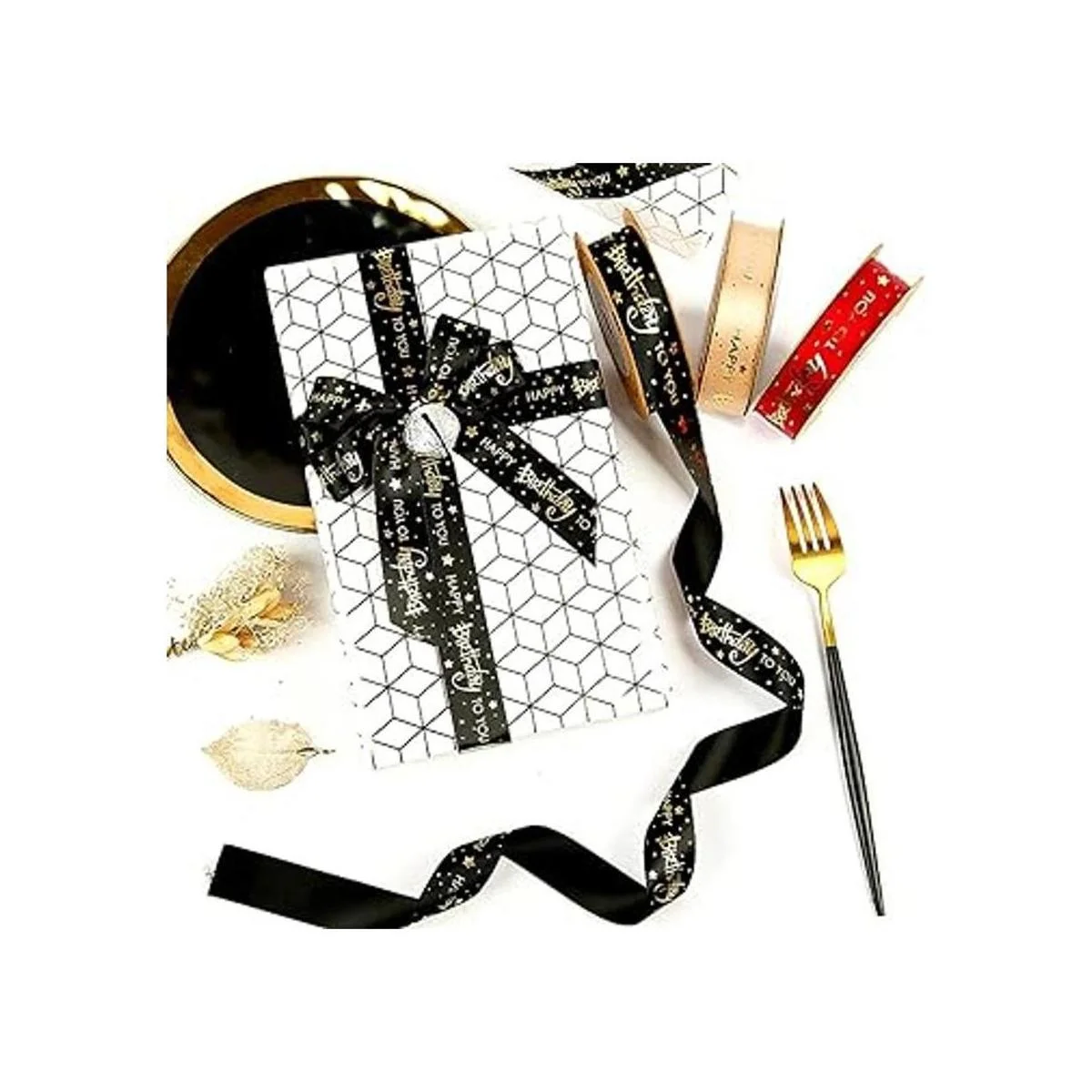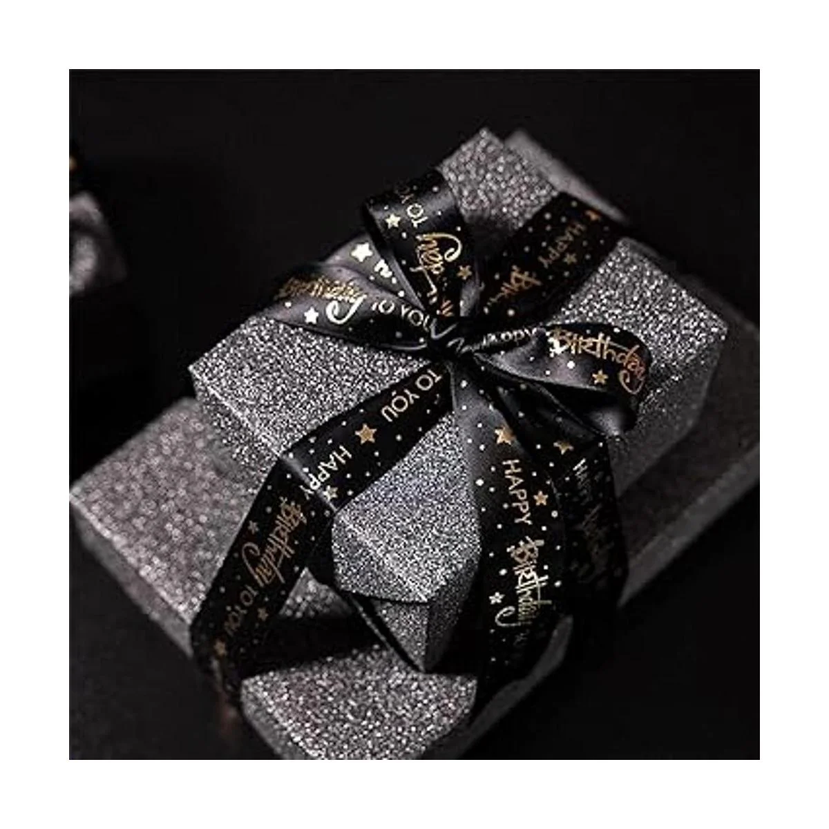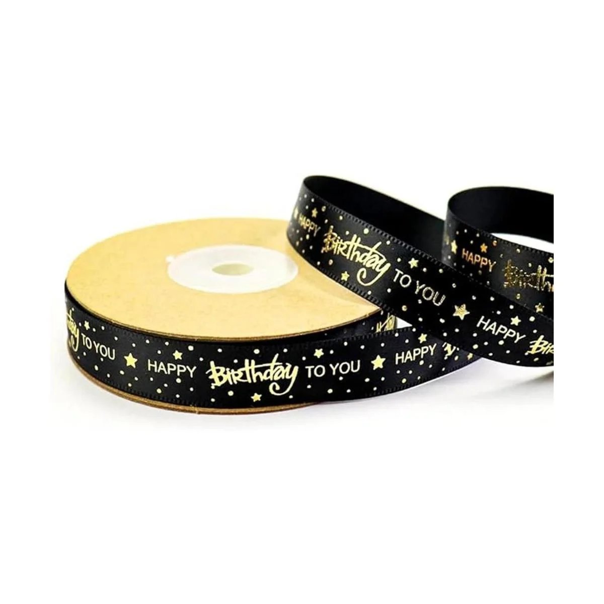 Hermoso patrón: las cintas negras de satén de cumpleaños para manualidades están impresas con Happy Birthday to You y estrellas, pueden añadir un ambiente feliz.