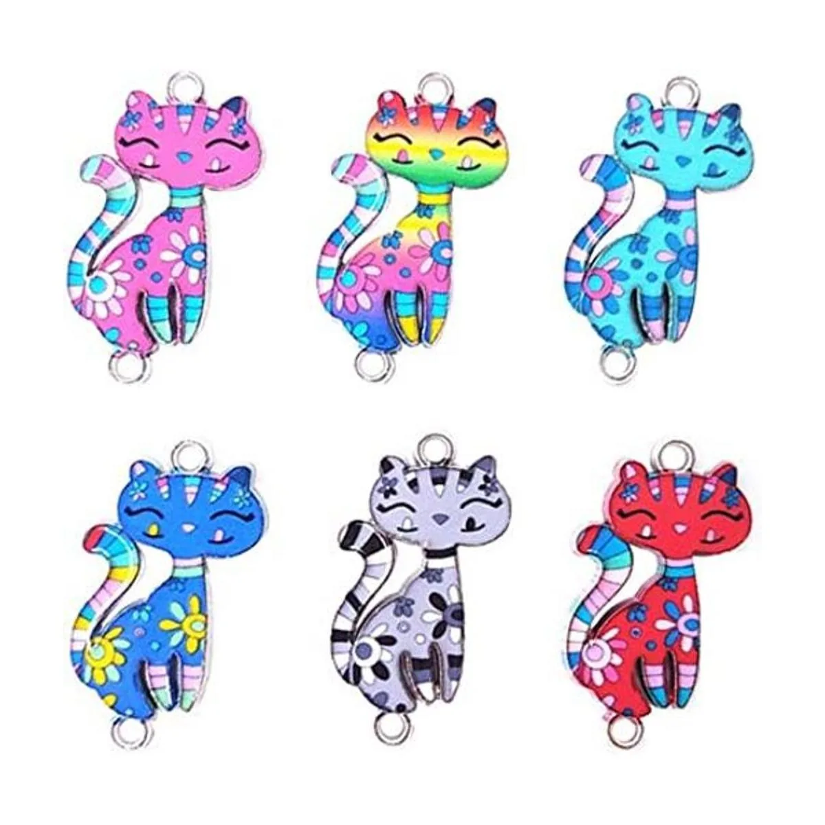 Los gatos impresos en diferentes colores son muy bonitos. El diseño de doble anillo es conveniente para hacer algunas joyas únicas. Es un accesorio colgante de bricolaje que vale la pena tener.