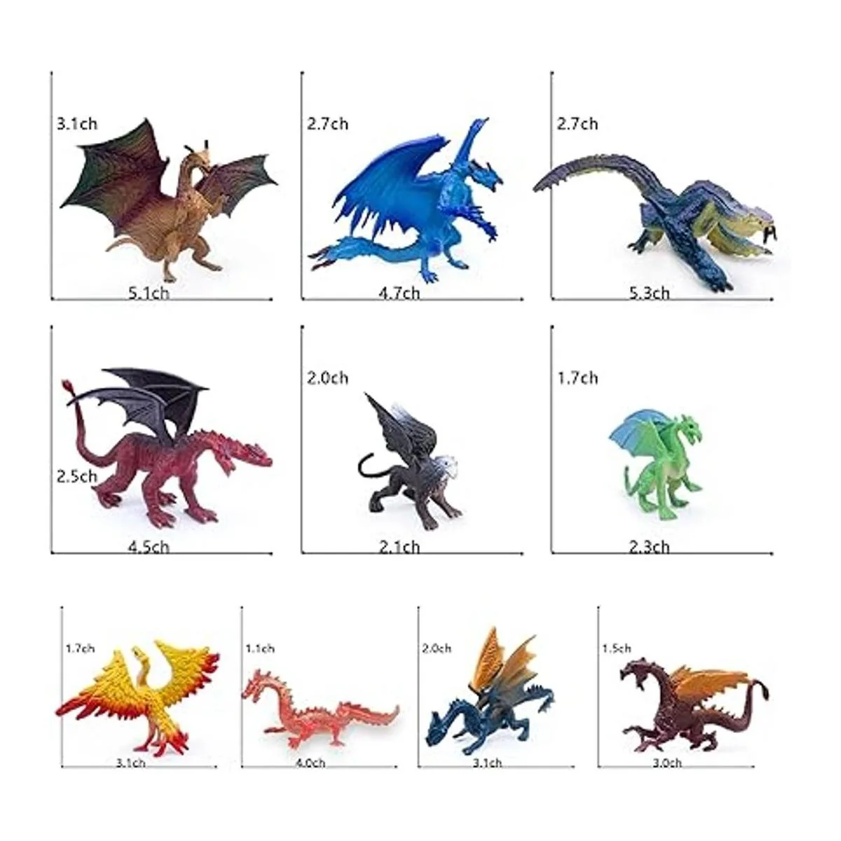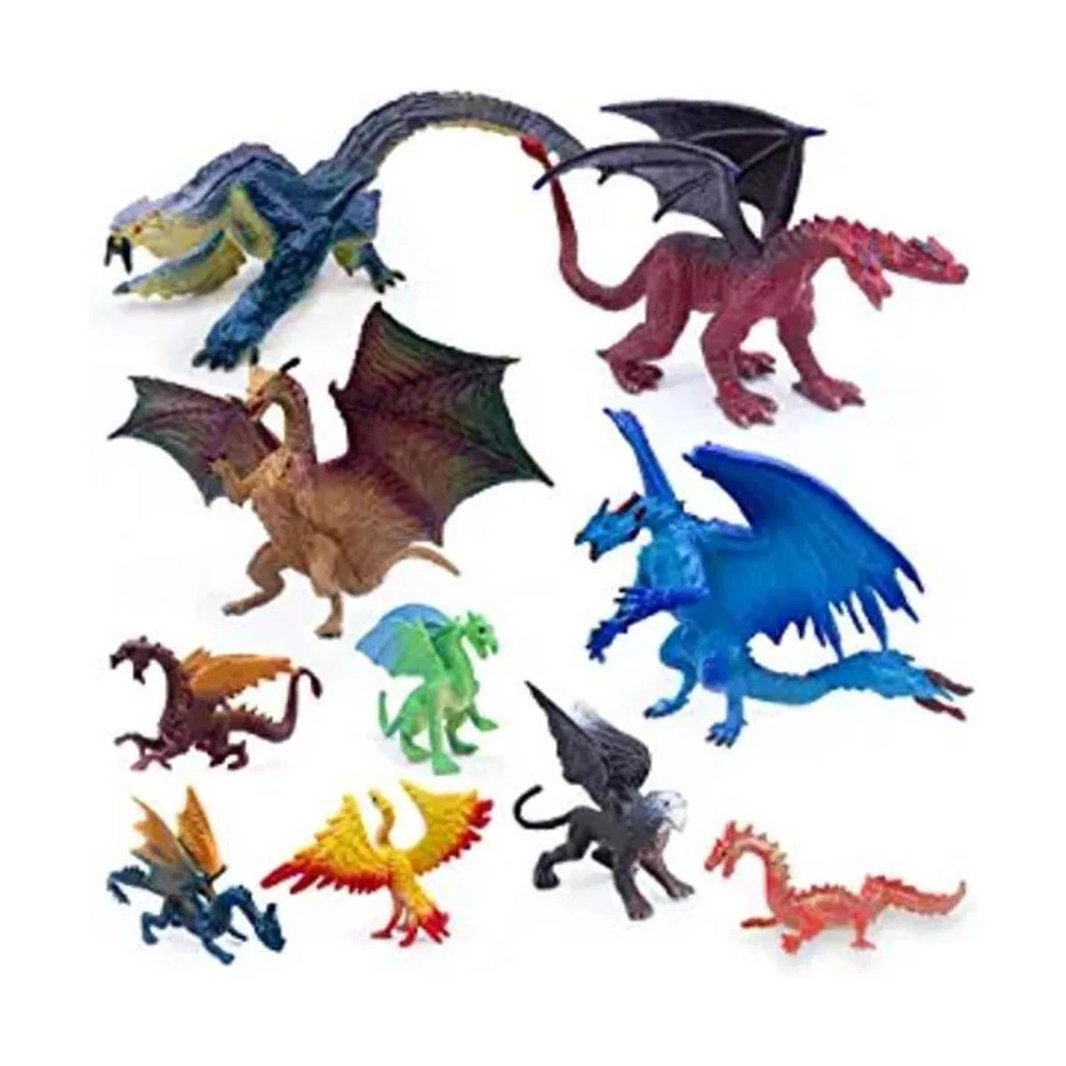 Figuras míticas de dragón: el juego de juguetes de dragón SIENON incluye 4 piezas de tamaño mediano que miden aproximadamente 5 pulgadas, 6 piezas de tamaño pequeño miden aproximadamente 3 pulgadas, total 10 piezas. Juguetes de dragón de plástico con colores vibrantes, aspecto natural, posturas activas, cada figura está finamente pintada a mano y esculpida por expertos. Los dragones de fantasía vienen en un brillante surtido de estilos y colores.