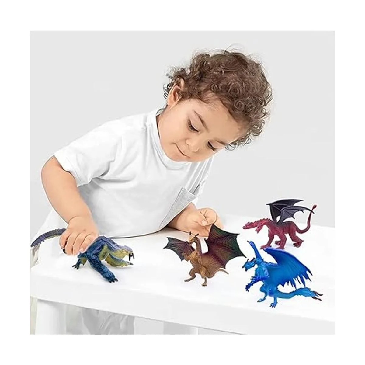 SIENON Figuras de juguete de dragón 4 figuras de dragón de plástico de 5 pulgadas con 6 piezas de mini juguetes de dragón de 3 pulgadas en varios colores y estilos, juguetes de dragón mítico para niños para decoración de pasteles, recuerdos de fiesta paquete de 10 dragón