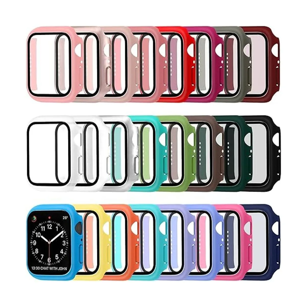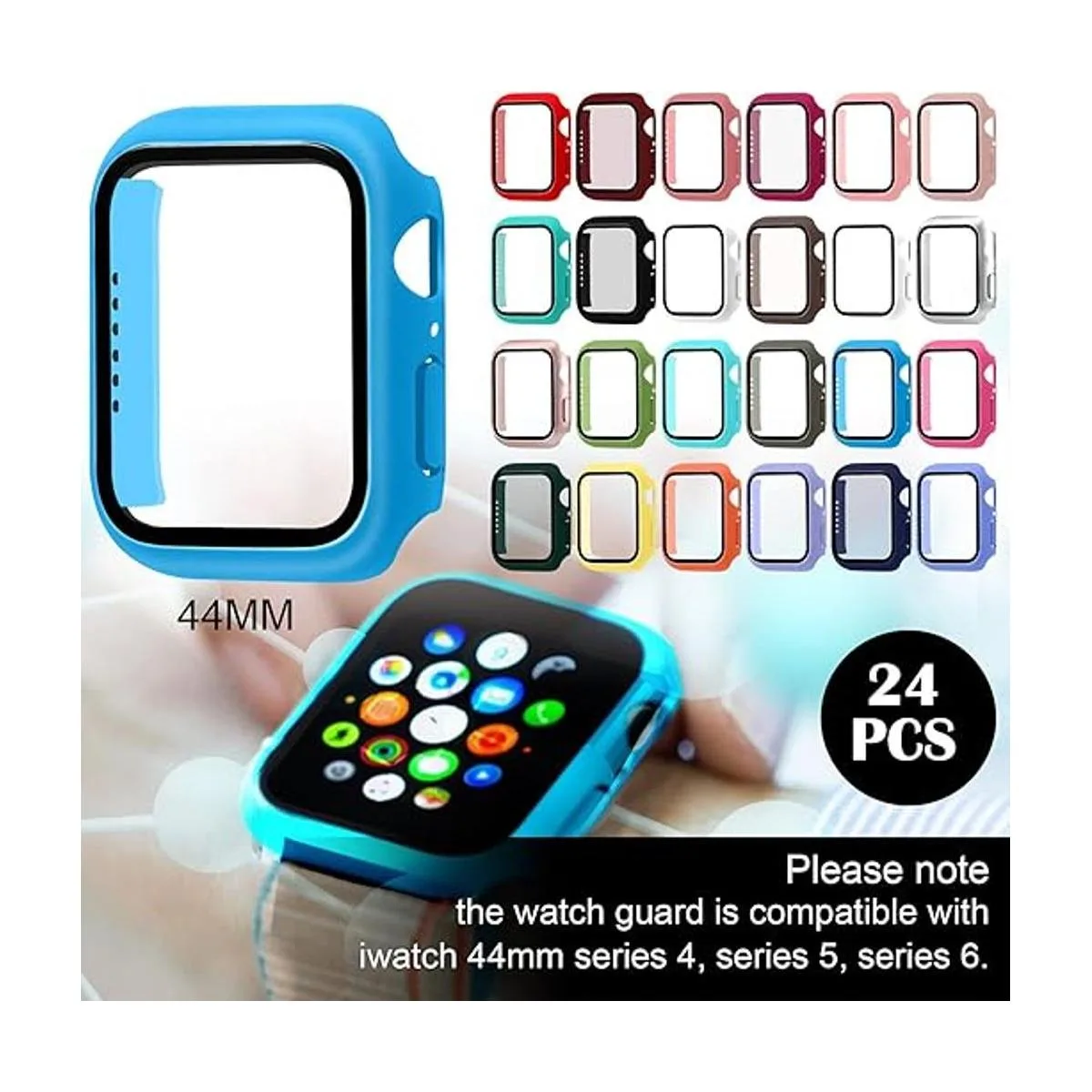 Sieral 24 piezas de carcasa rígida de policarbonato con protector de pantalla de vidrio templado, funda protectora de reloj inteligente compatible con iWatch Series 5, 6, 4, 1.73 pulgadas 1.732 in para hombres y mujeres, colores surtidos