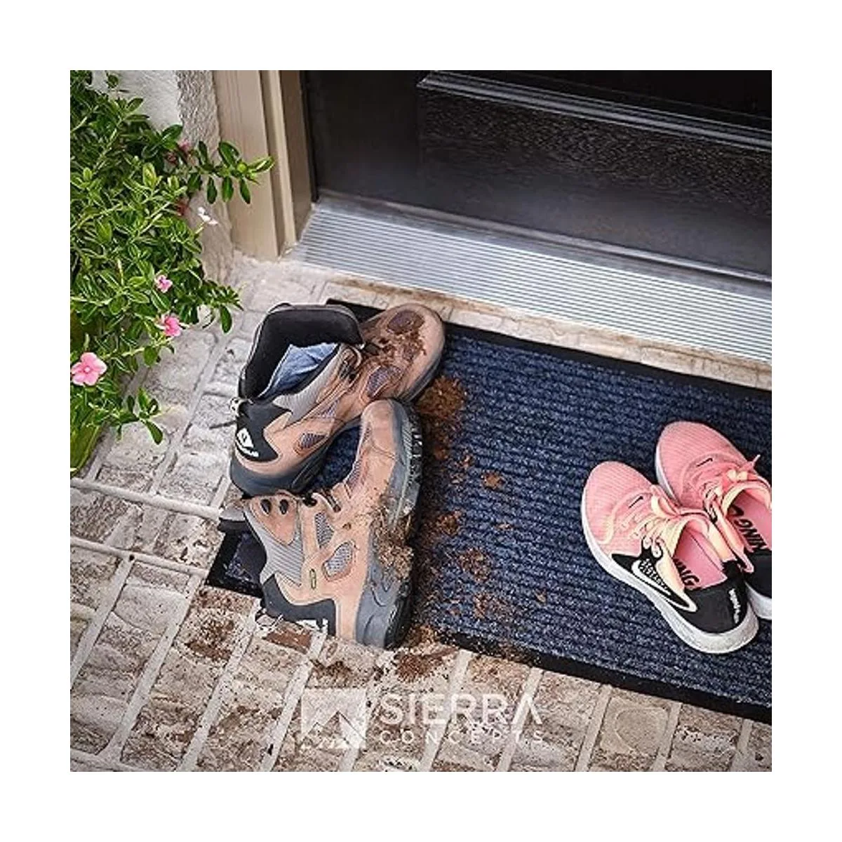 Sierra Concepts juego de 2 tapetes de bienvenida para puerta delantera, para interiores y exteriores, con rascador de zapatos, ideal para el hogar, entrada y zonas de alto tráfico, color gris acero, 30 x 17 pulgadas