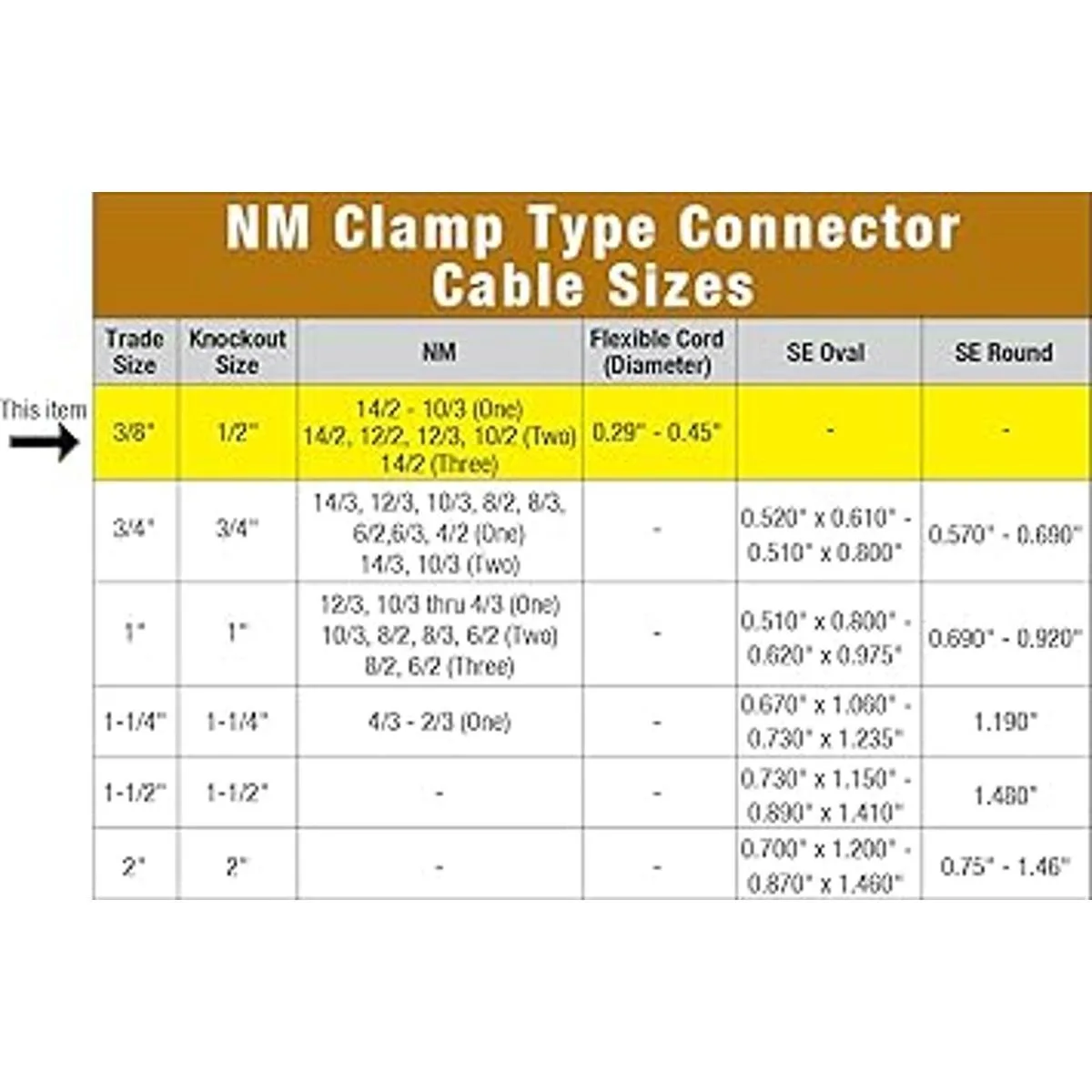 Para un cable de 14/2 10/3 NM o . 29 pulgadas. Cable flexible de 45 pulgadas