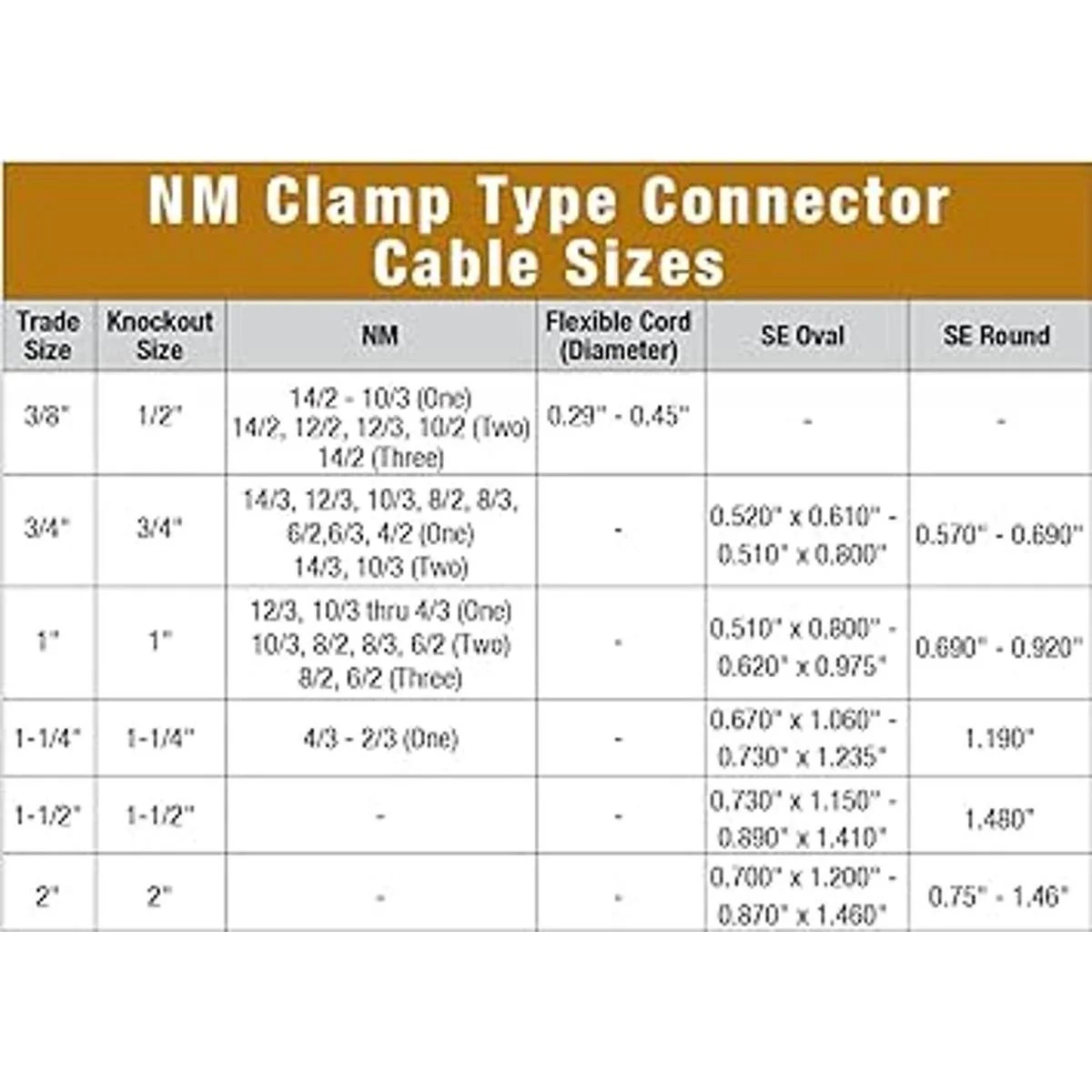 Para un cable de 14/2 10/3 NM o cable flexible de 0.29 a 0.45 pulgadas