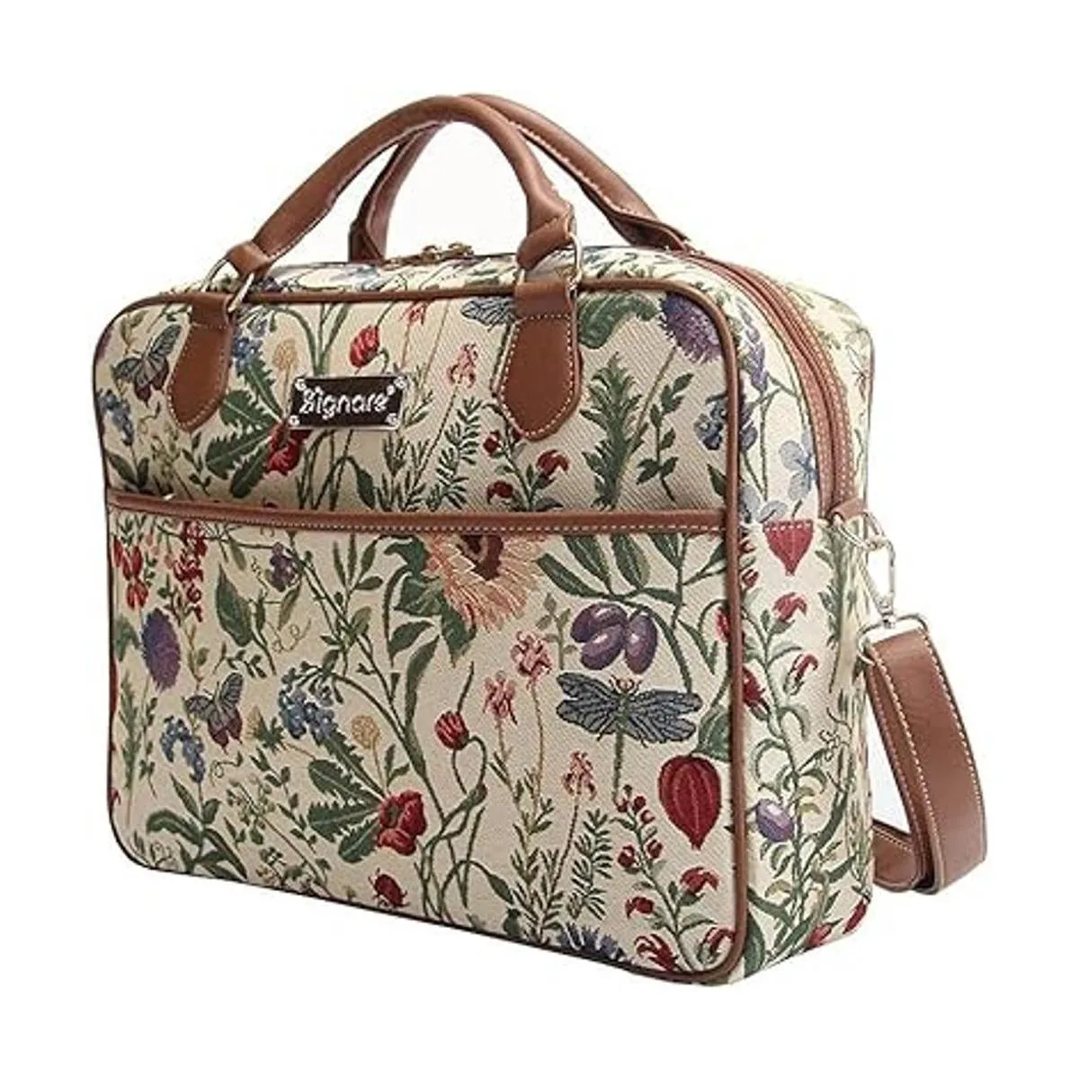 El material principal de esta funda para portátil está hecho de un tapiz tejido de alta calidad. La singularidad de una bolsa de tapiz SIGNARE es la obra de arte. Cada producto Signare tiene su personalidad e historia para contar. Este diseño de jardín cuenta con una variedad de flores de jardín con fondo ligero, que aportan un toque floral vintage a tu estilo. Para cualquier amante de la jardinería, esta bolsa vibrante e interesante te transportará a un prado tranquilo y sereno.