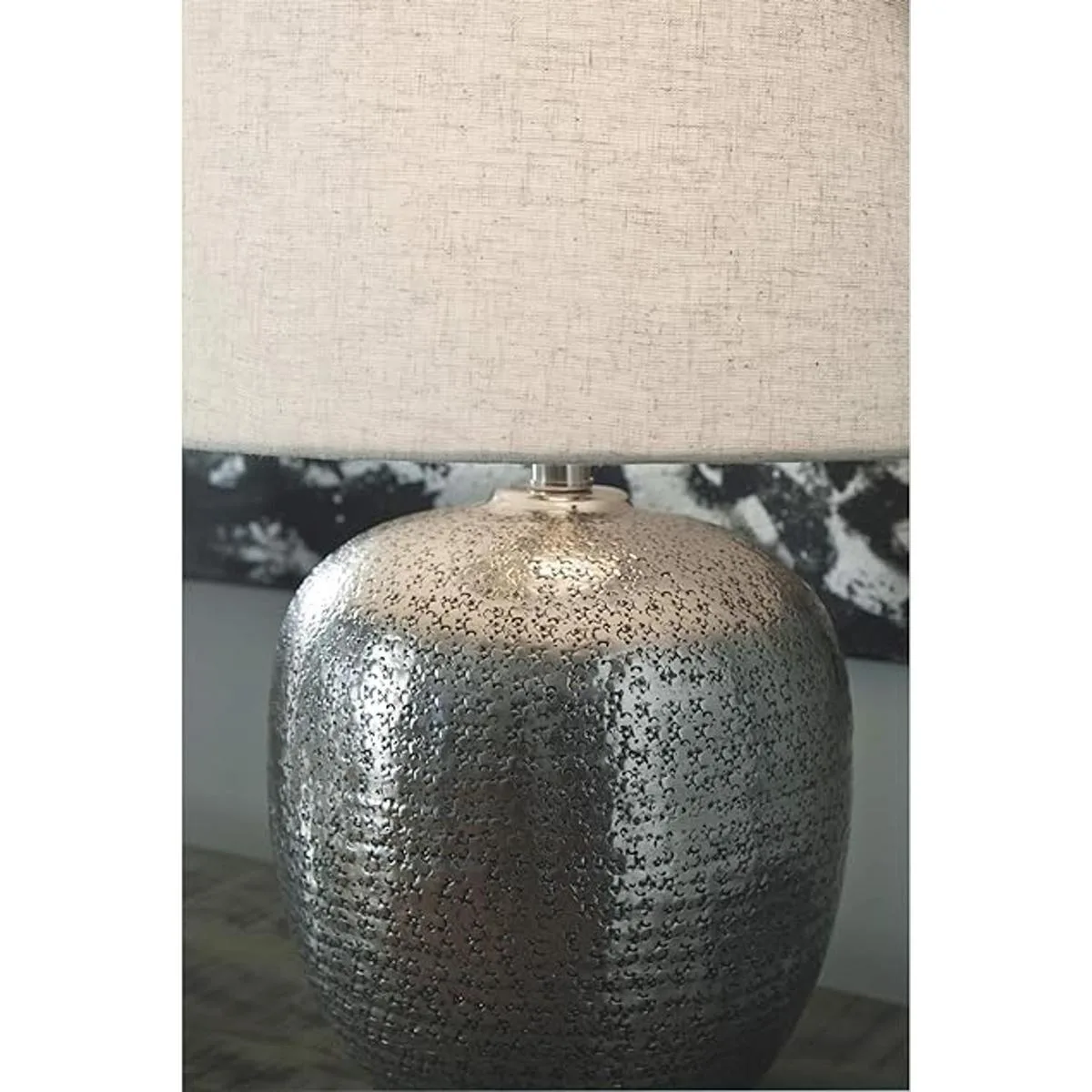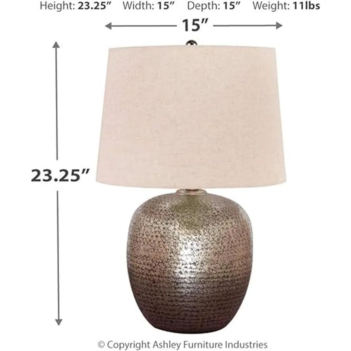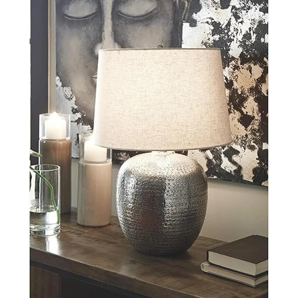 Signature Design by Ashley Magalie Contemporary Lámpara de mesa individual de aluminio martillado de 23.13 pulgadas, plata antigua