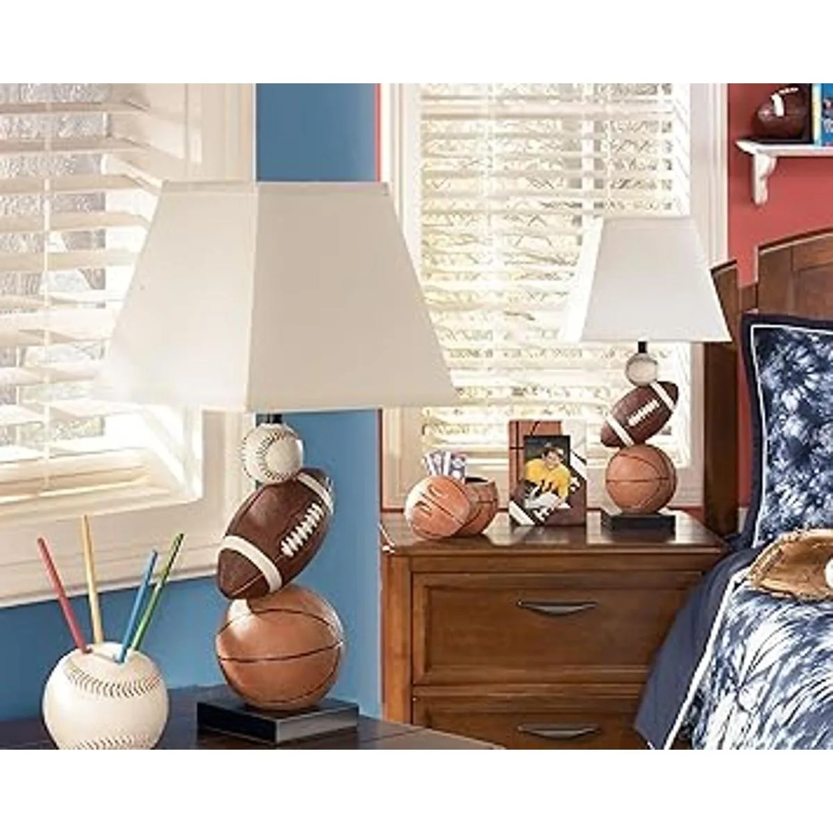 Signature Design by Ashley Nyx Youth Lámpara de mesa deportiva de béisbol y fútbol de 24 pulgadas, marrón y naranja