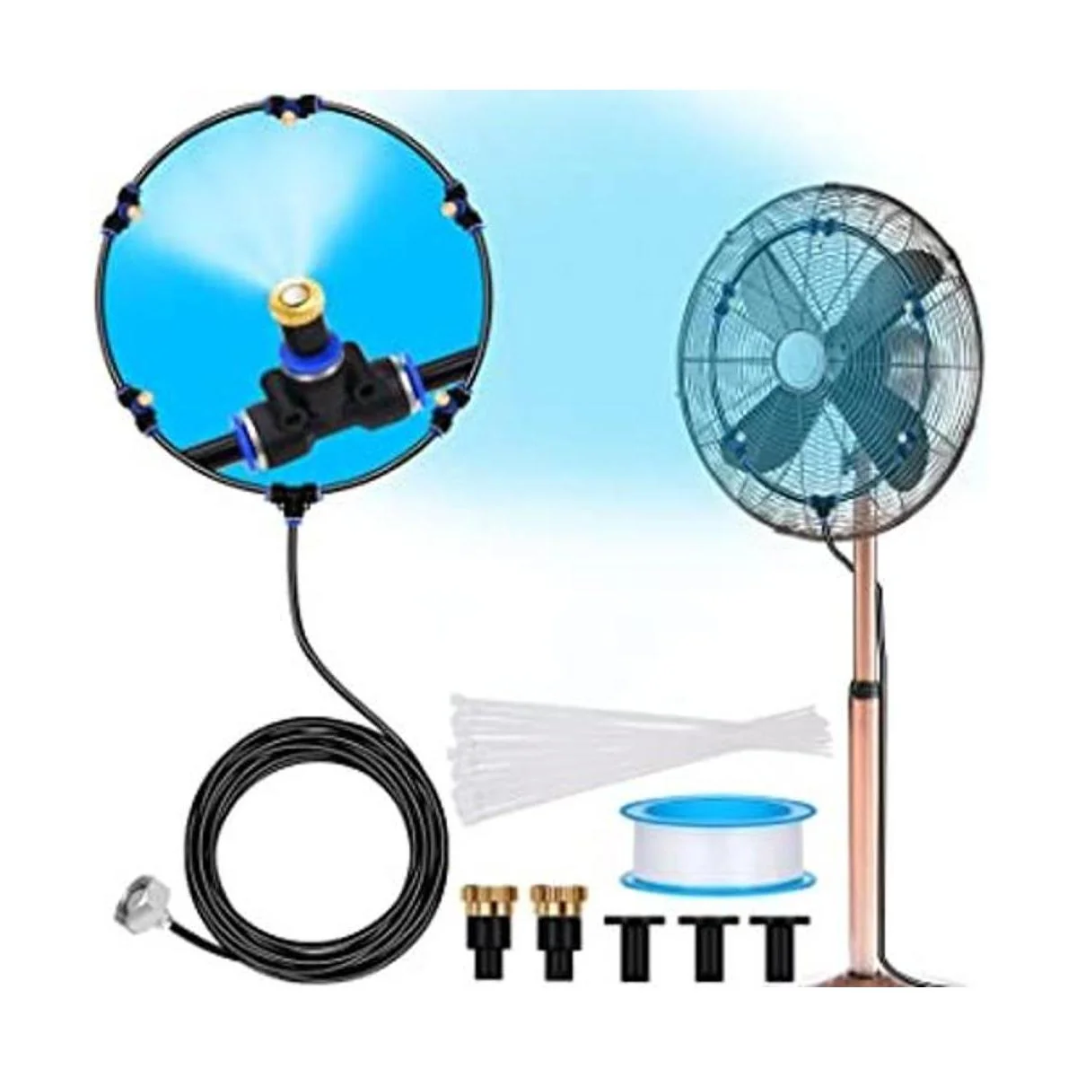 Signice Kit de nebulización de ventilador mejorado, ajustable, 26 pies, para refrigeración al aire libre, con 5 boquillas de niebla, ventiladores de agua para patio exterior
