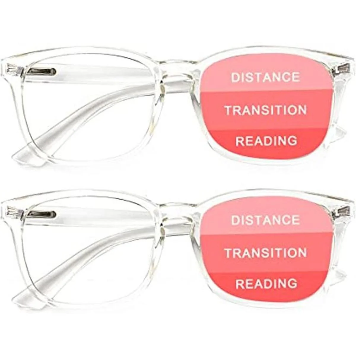 Las gafas multifocales progresivas son adecuadas para leer y mirar objetos distantes sin una recogida frecuente. La parte inferior de la lente tiene un aumento de potencia completa, luego se utiliza para lectura de casi distancia. La parte media tiene un aumento de potencia ligeramente reducido para trabajar en computadora, ver televisión, etc. La parte superior tiene un aumento de media potencia para caminar, ir de compras, etc. Significa que puedes llevar las gafas en cualquier momento y en cualquier lugar.