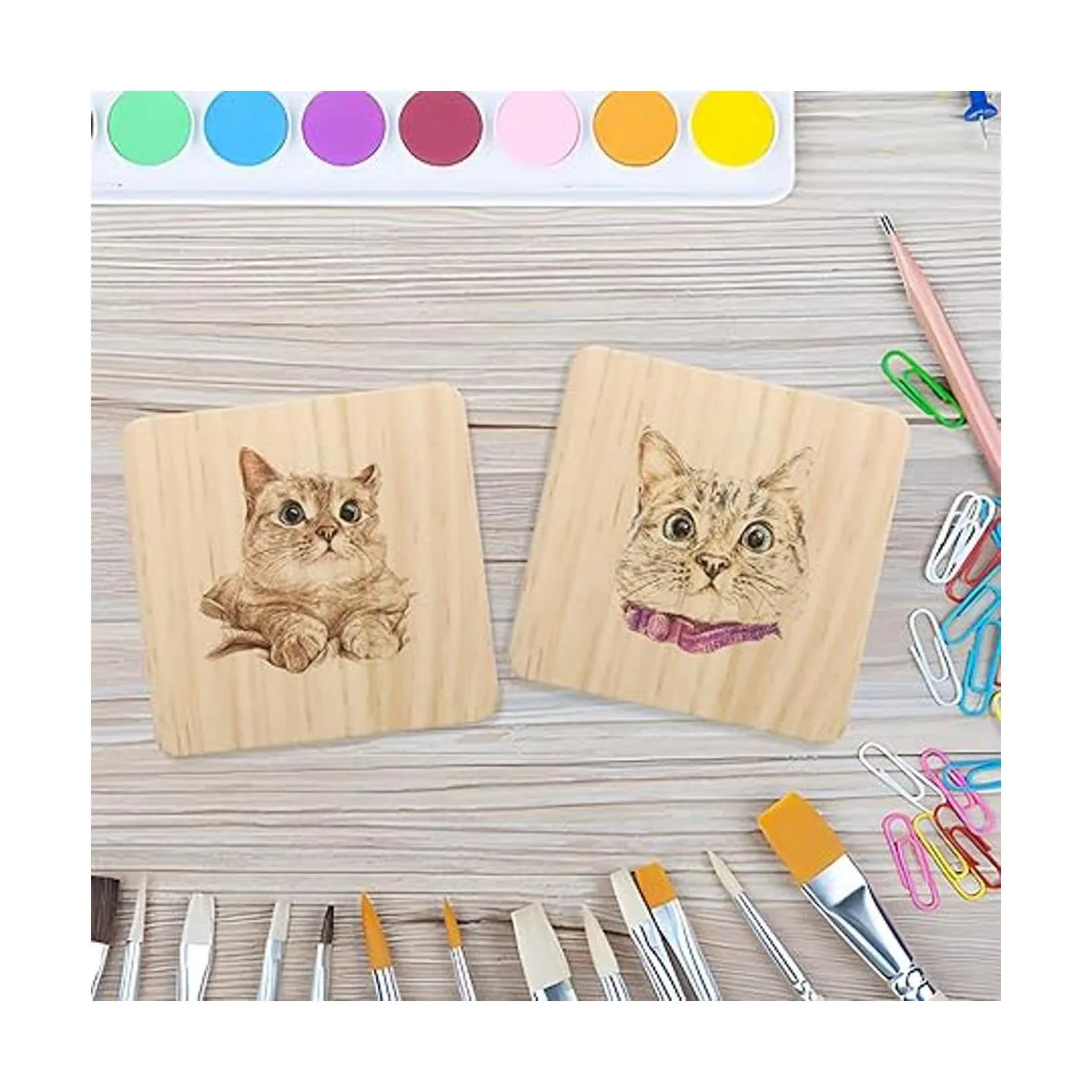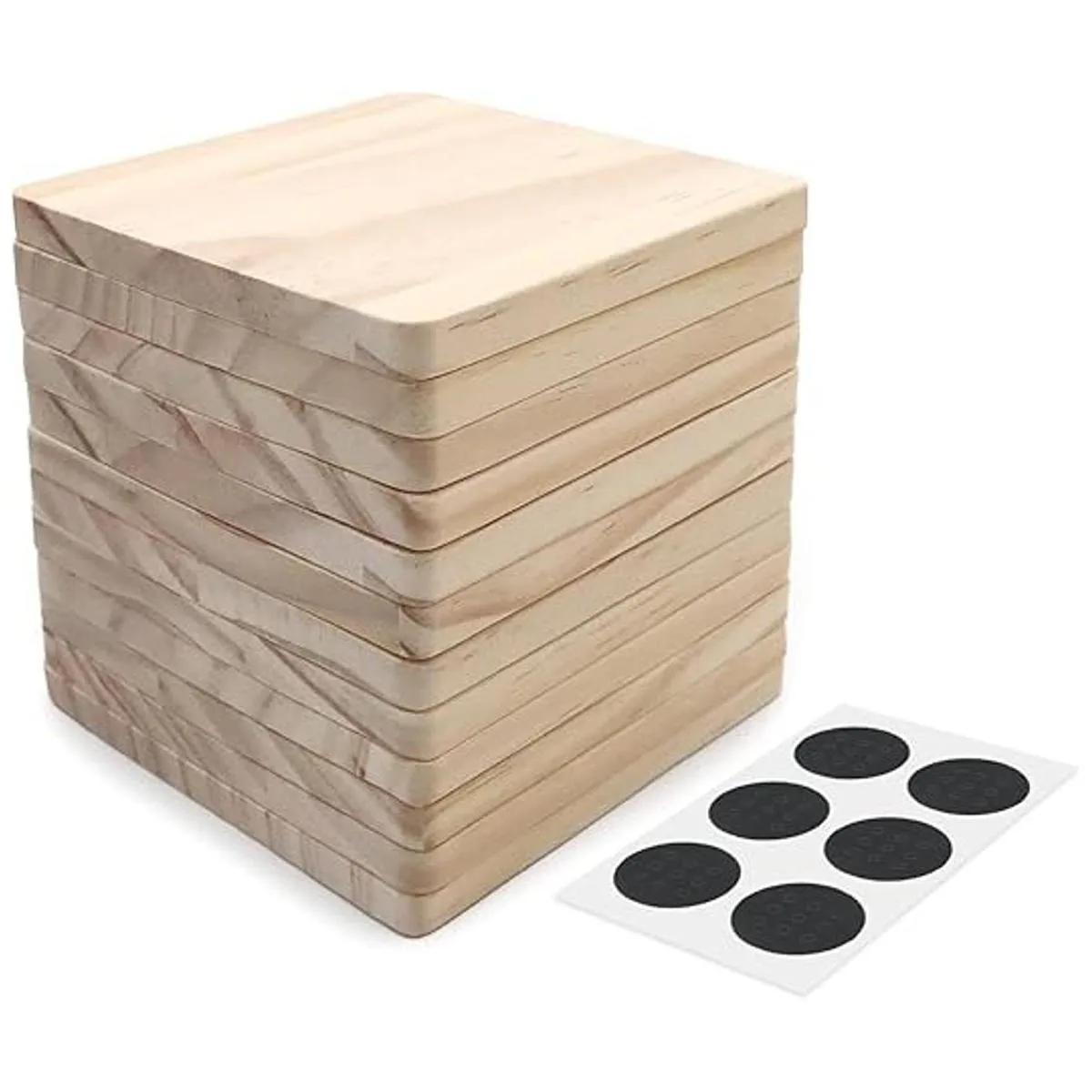 SIJDIEE 12 posavasos cuadrados de madera sin terminar, 4 pulgadas, para manualidades, con puntos de silicona antideslizantes para bricolaje, pintura teñida, grabado de madera, decoración del hogar