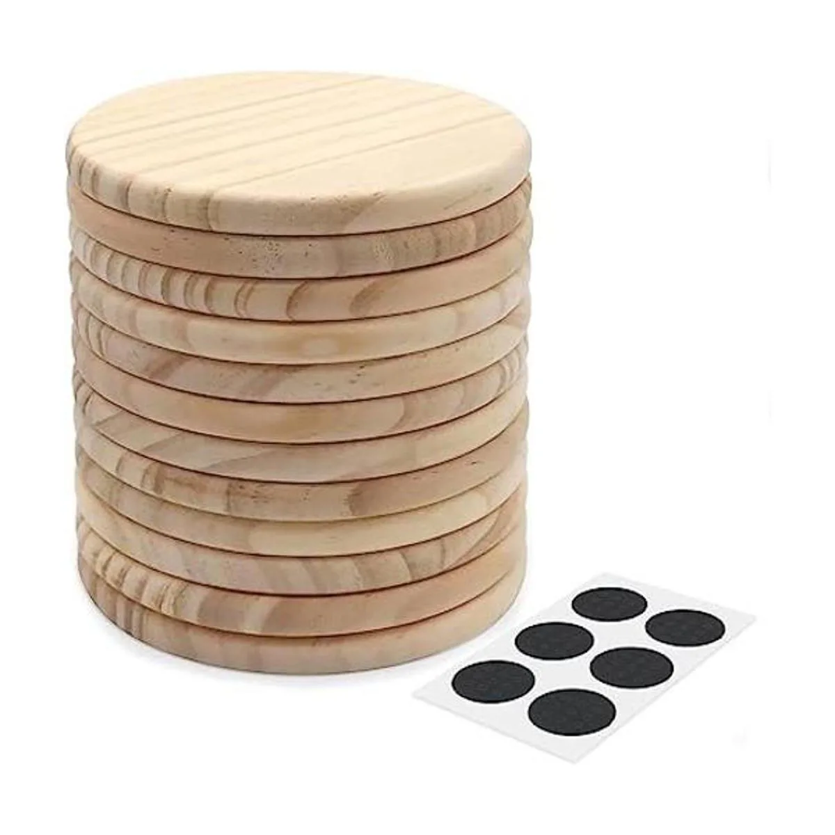 El paquete incluye: viene con 12 posavasos redondos de madera y 54 puntos de fieltro antideslizantes adhesivos. Sugerimos instalar 4 almohadillas antideslizantes en la parte inferior de cada posavasos para evitar que se agite cuando se utiliza.