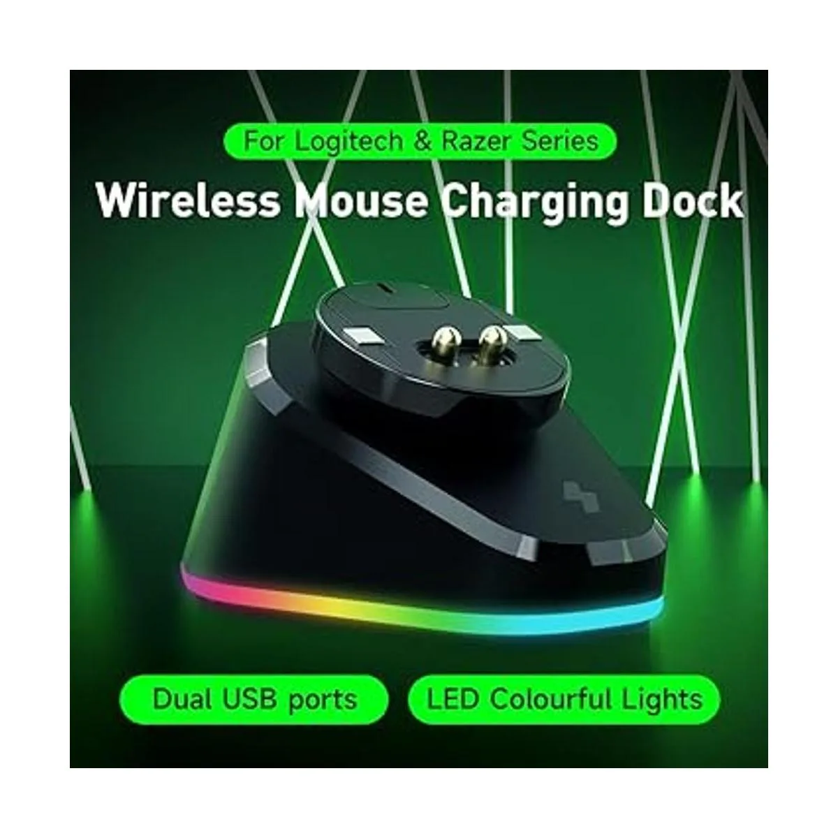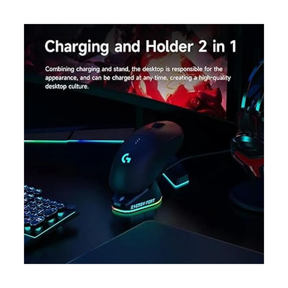 SIKAI Base de carga inalámbrica de repuesto para ratón inalámbrico Logitech para juegos, compatible con ratones inalámbricos Logitech G903, G703, G502, G403, G PRO para juegos, con luz RGB negro