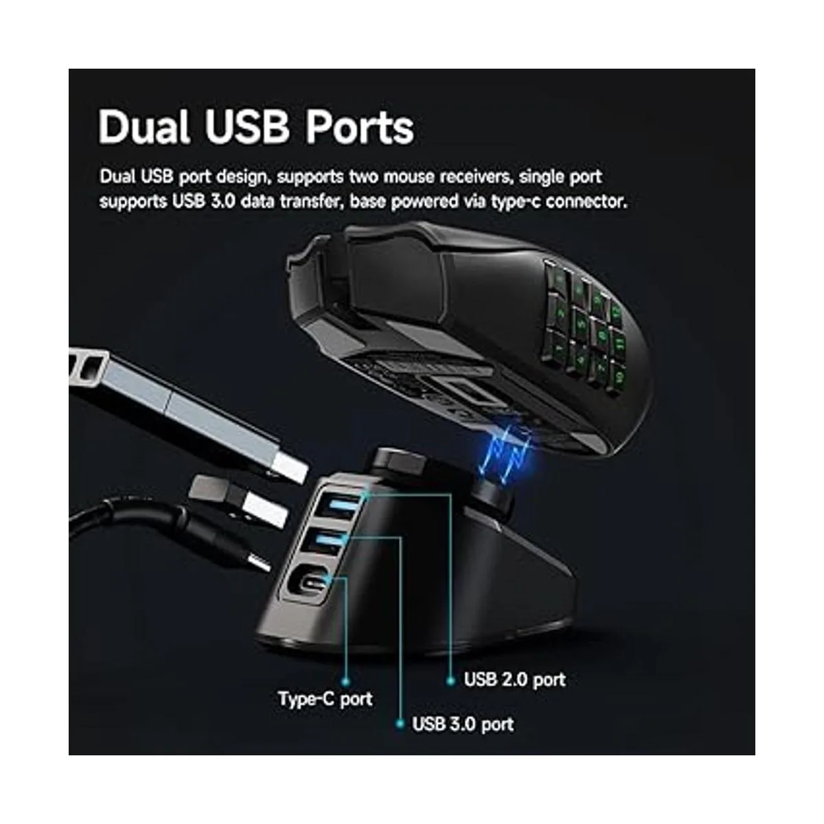 Protección de carga: cuando se utiliza esta base de carga para cargar, para proteger el mouse de sobrecarga, el mouse no se cargará completamente, y solo se puede cargar al 8596