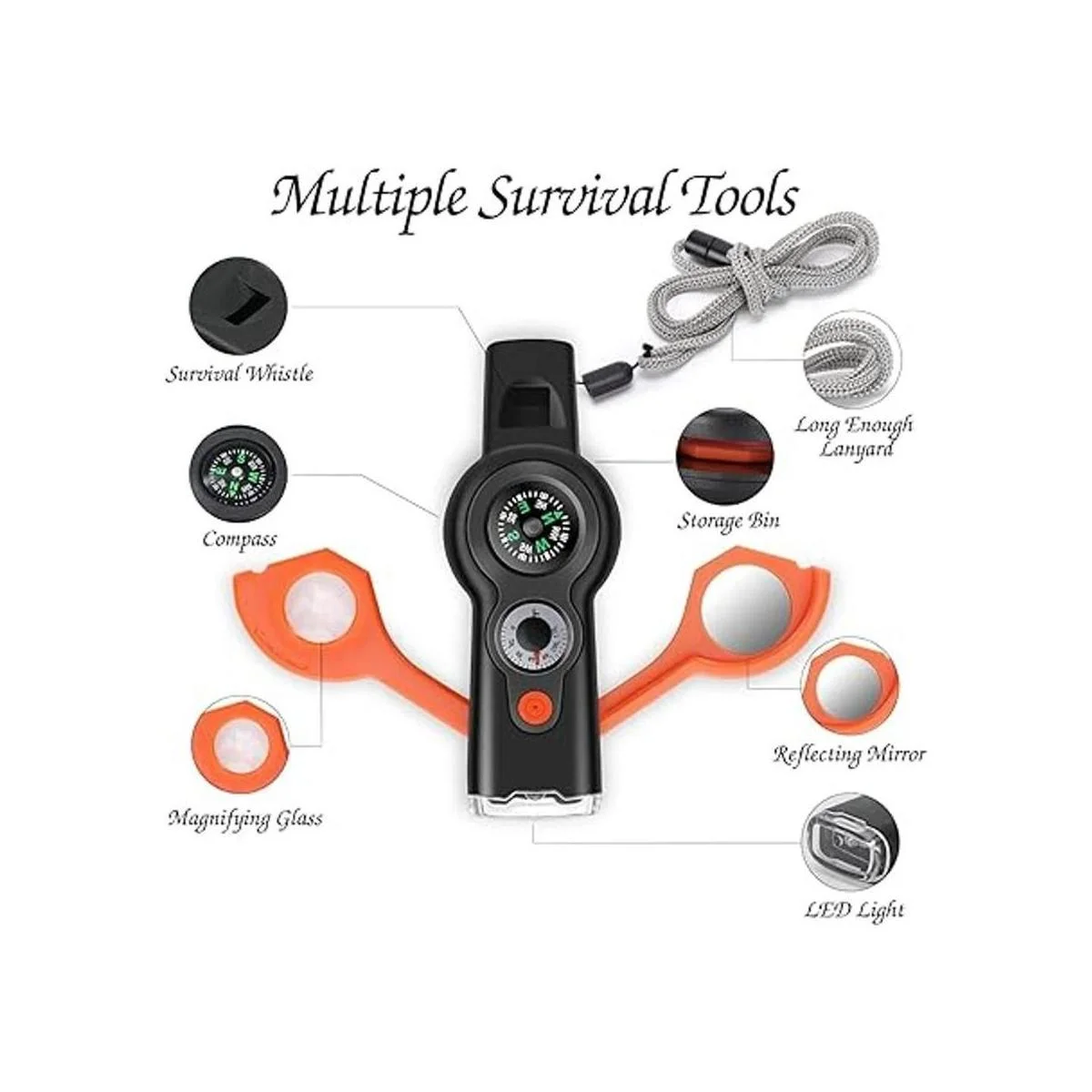 Silbato de supervivencia de emergencia 7 en 1, herramienta multifuncional para exteriores, silbato de seguridad con cordón, ideal para kayak, canotaje, senderismo, camping, escalada, caza, pesca, señalización de rescate