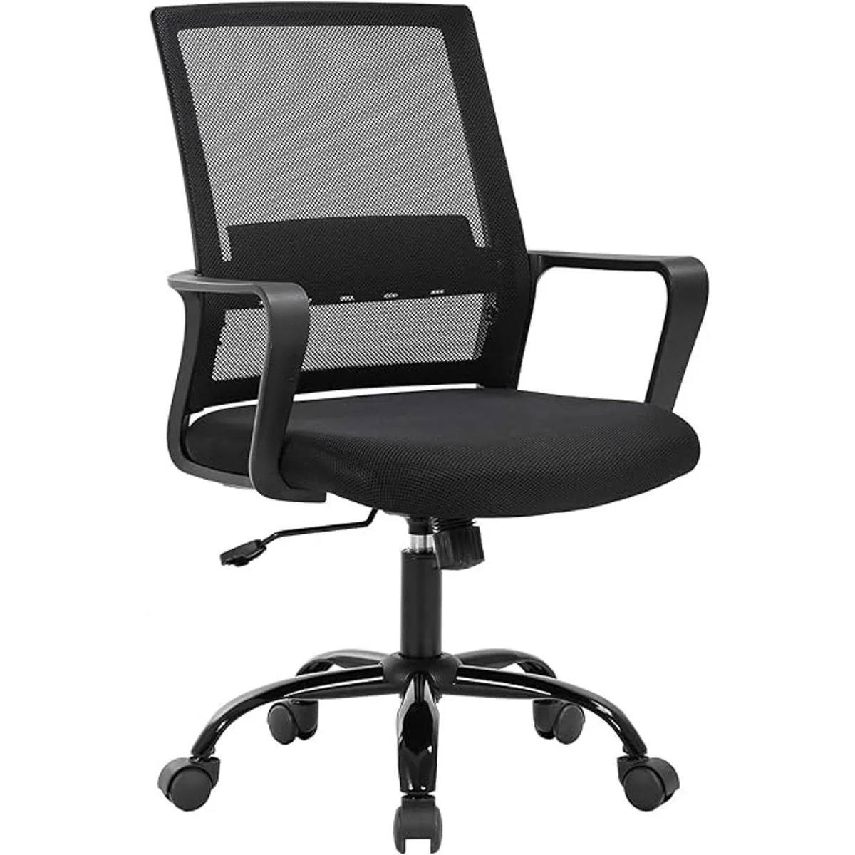 Silla de oficina en casa, silla ergonómica de escritorio, silla giratoria para computadora, silla ejecutiva de apoyo lumbar, silla de malla ajustable para mujeres y hombres negro