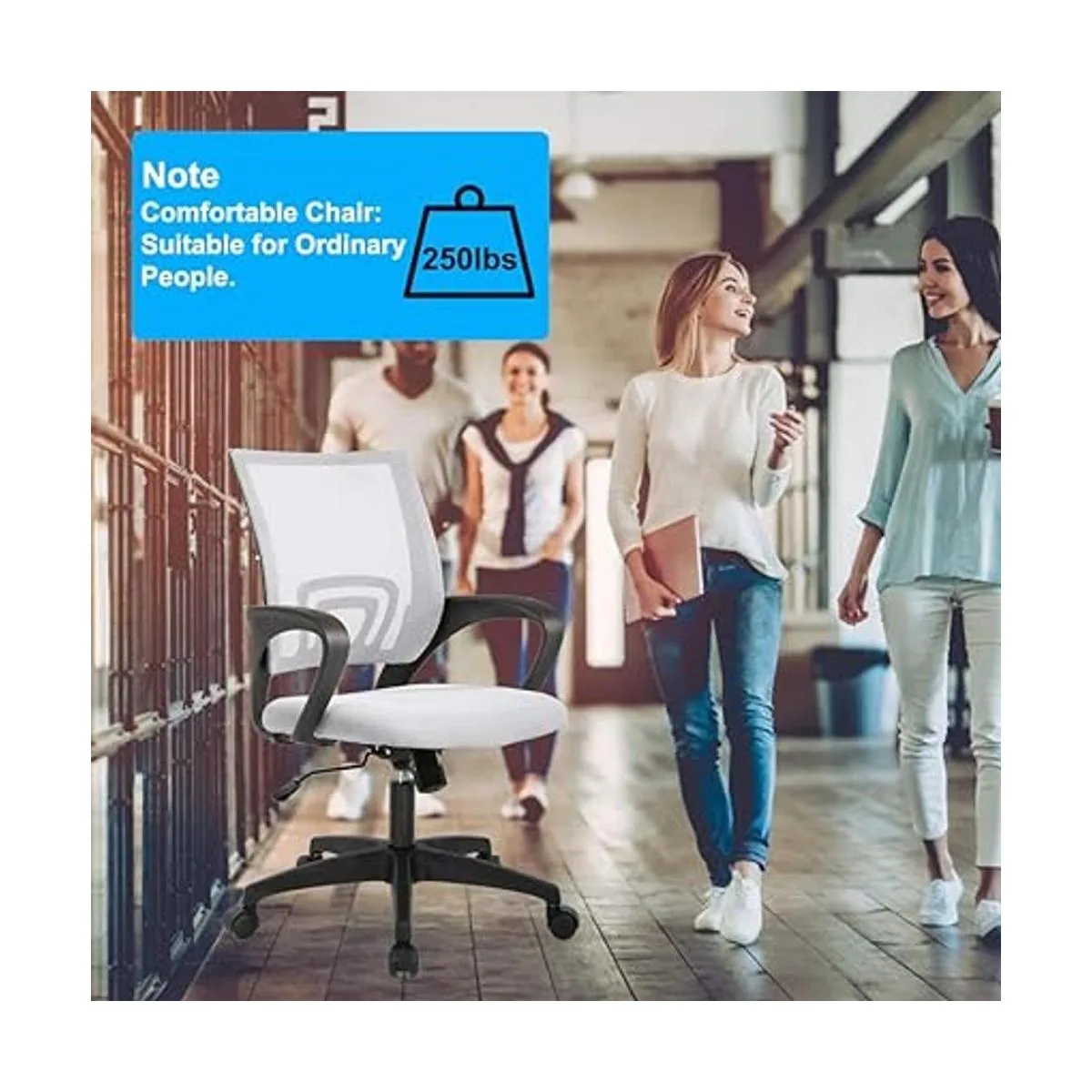 Servicio al cliente Todos los accesorios de nuestra silla de oficina han pasado la prueba comercial, lo que es una garantía para tu seguridad personal. La silla de malla puede soportar el peso de 250 libras.