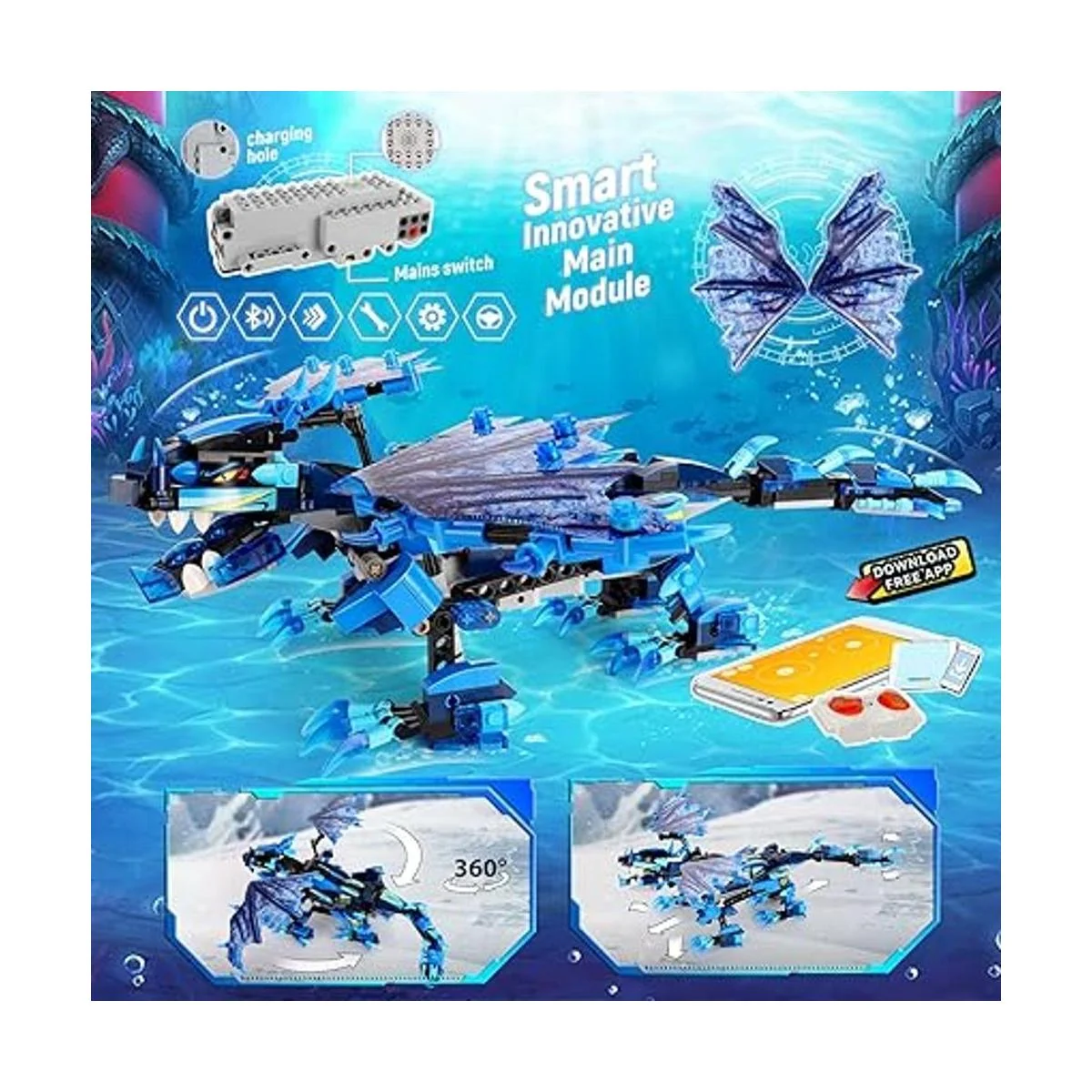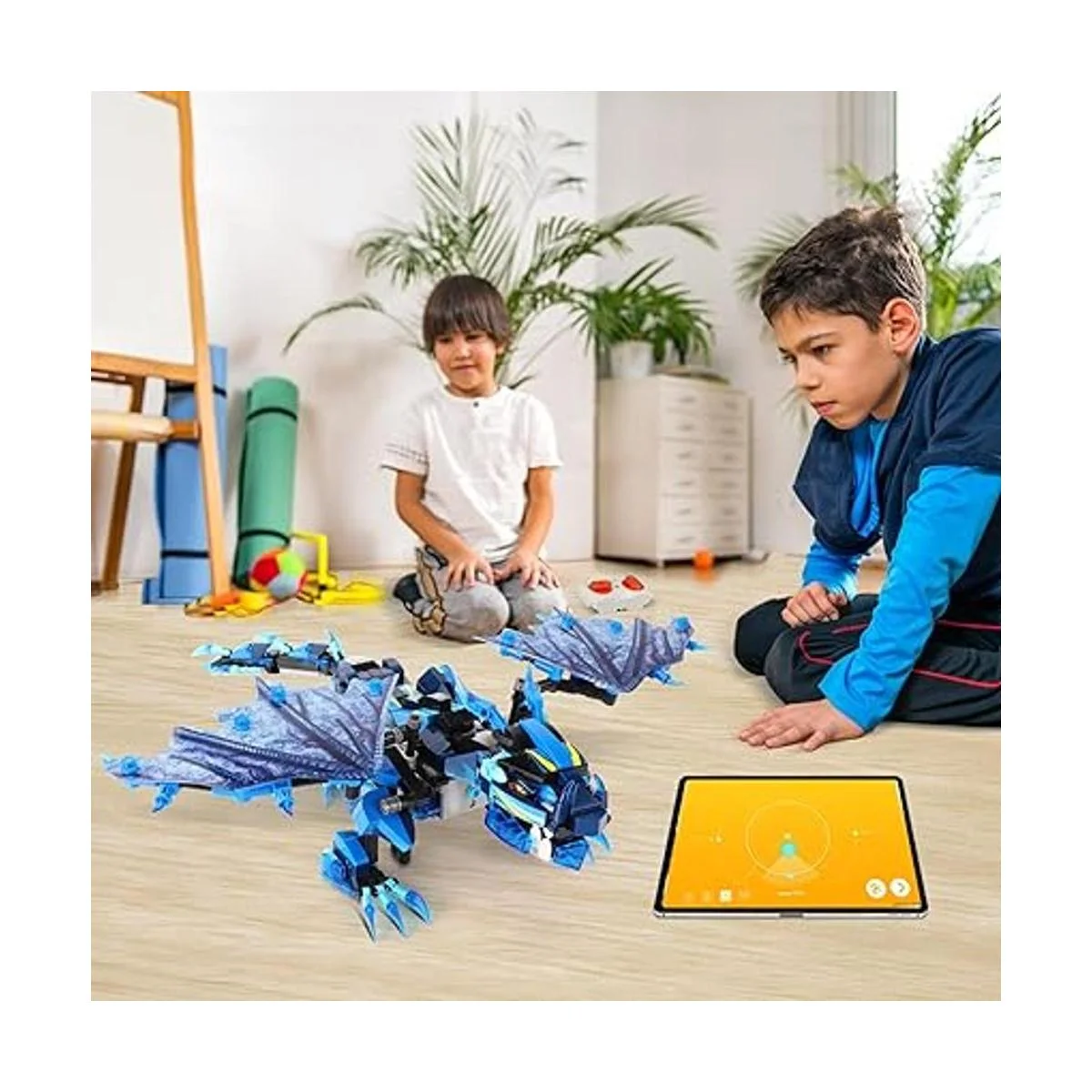 Control remoto del teléfono y control de aplicación : los juguetes de construcción de dragón Sillbird se pueden controlar no solo por un control remoto de 2.4 GHz la distancia máxima es de 65.6 ft, sino también a través de la conexión Bluetooth de la aplicación del teléfono móvil. Tiene modo de control remoto, modo de ruta, control de voz, programación STEM y detección de gravedad, que es simple y fácil de usar. El robot puede moverse en todas las direcciones en interiores o exteriores, incluyendo acrobacias izquierda, derecha, adelante, atrás y rotación de 360 grados.
