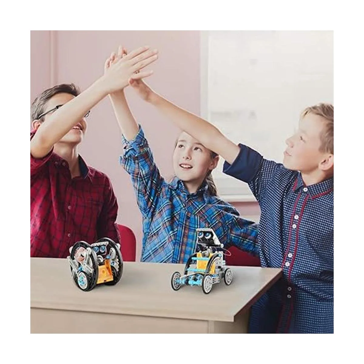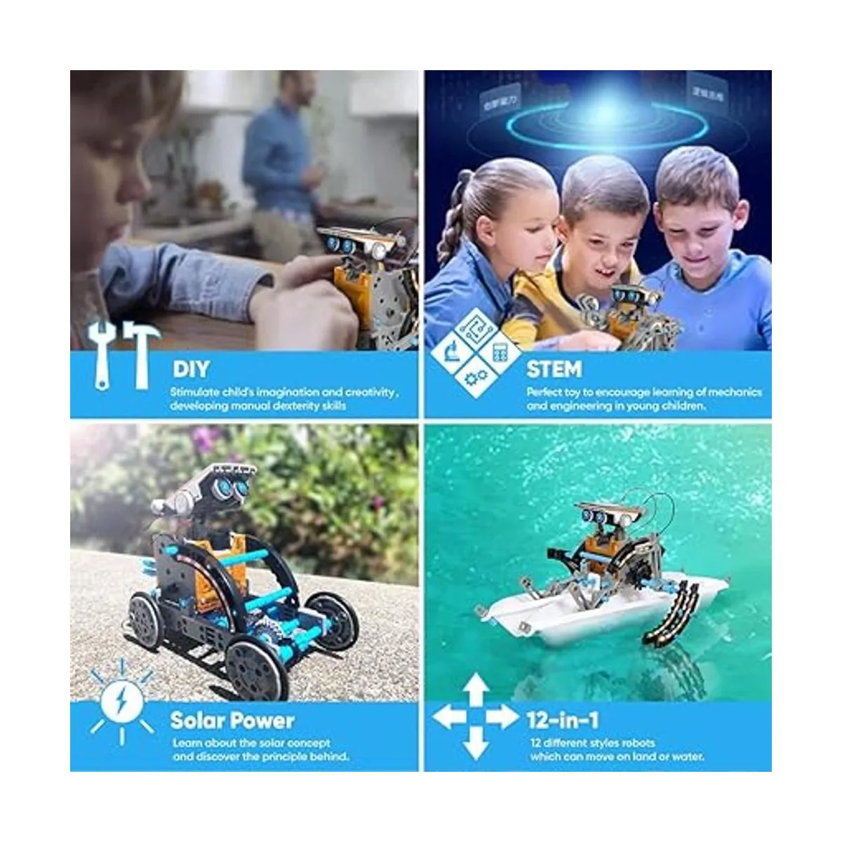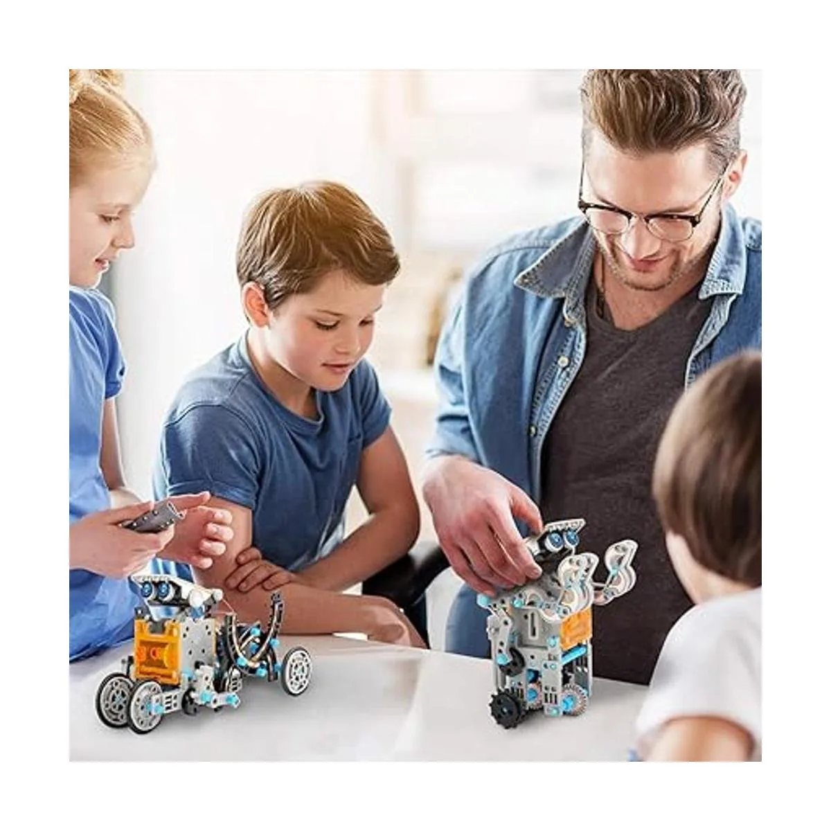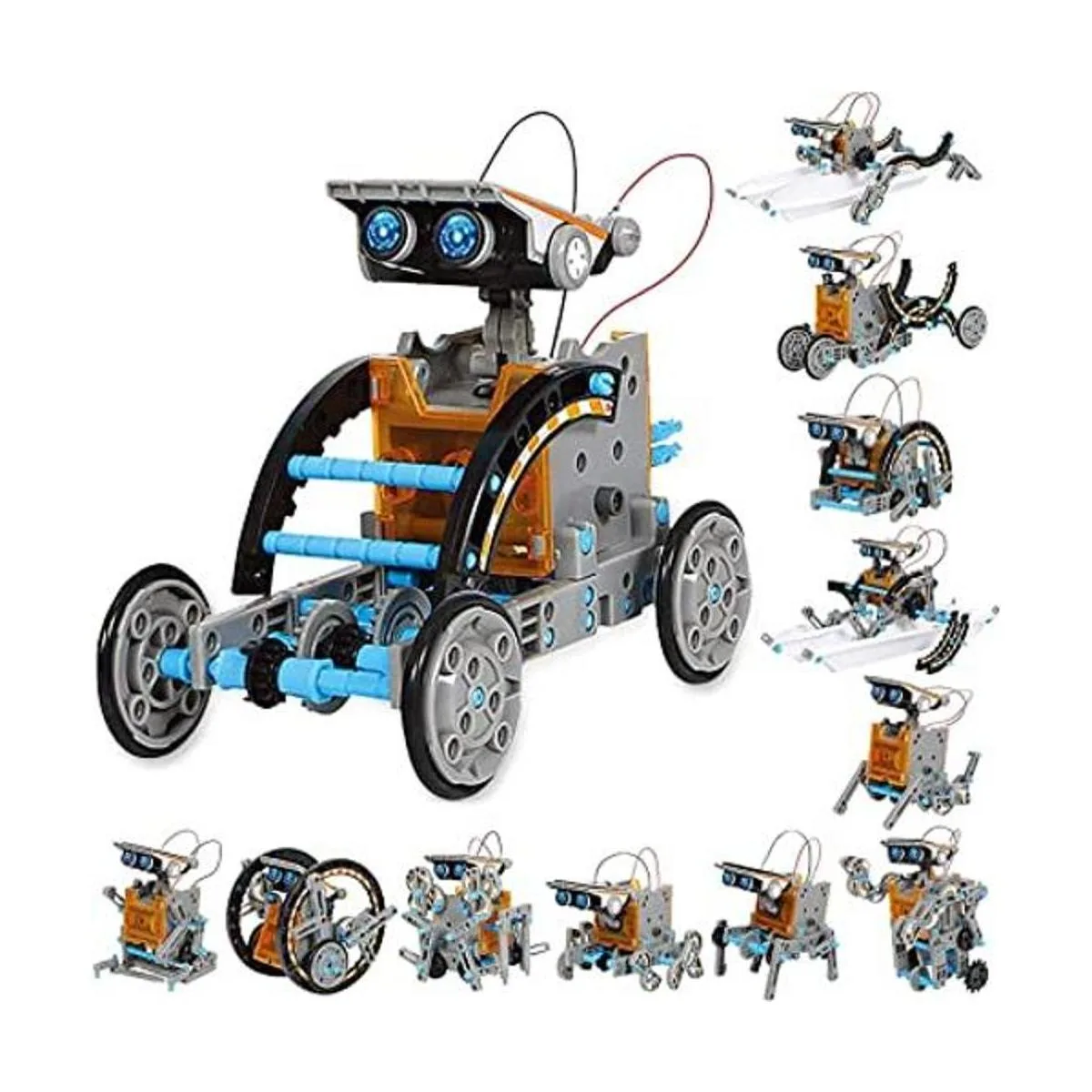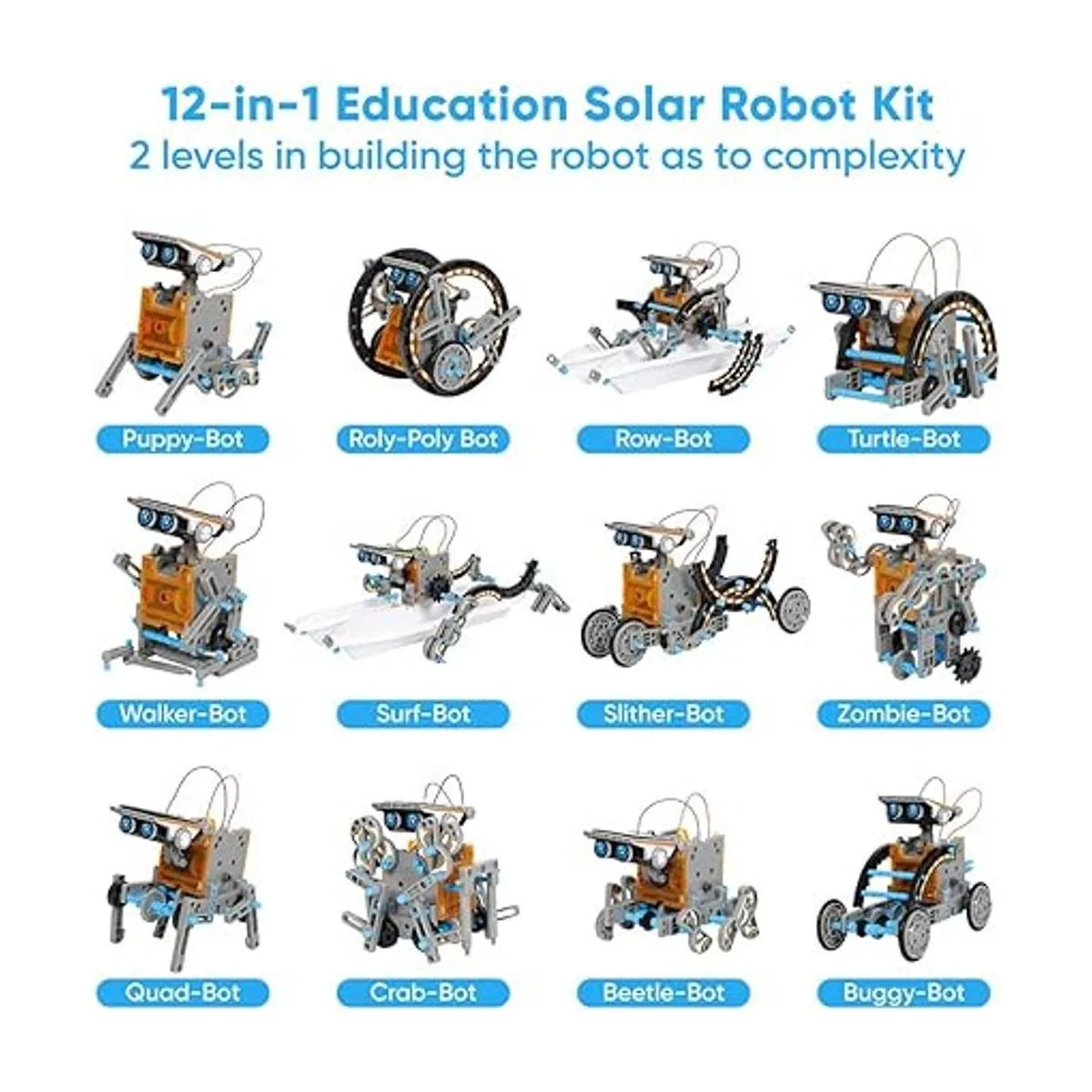 12 tipos diferentes de robots. 12 robots para armar diferentes que pueden moverse en tierra o en agua; con dos niveles en cuanto a la complejidad, comenzando desde el nivel principiante para el niño más joven hasta el nivel avanzado para que el niño mayor ponga a prueba sus destrezas manuales. Esta es una gran manera de que tus hijos se inicien en el mundo de los juguetes robóticos.