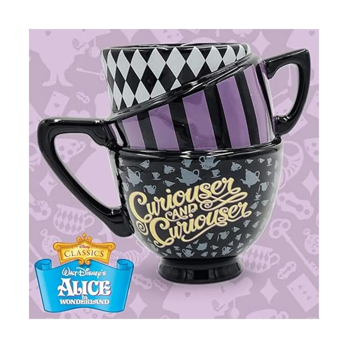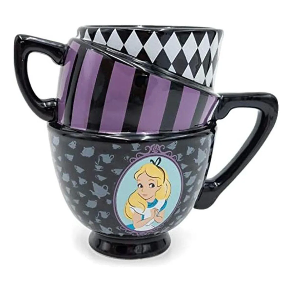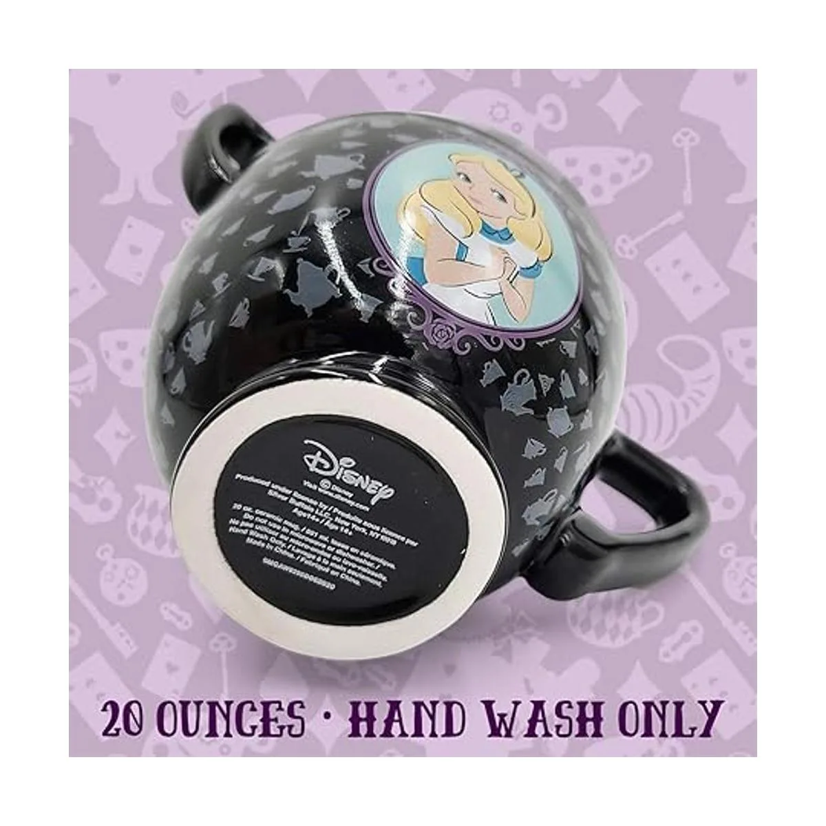 Silver Buffalo Disney Taza de té cerámica, diseño de búfalo 3D, Tazas de té apiladas de Alice., Negro