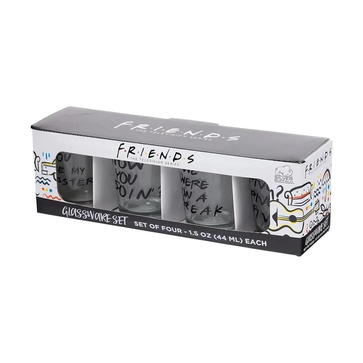 Silver Buffalo Friends Iconic Quotes Only Paquete de 4 mini vasos, 1.5 onzas