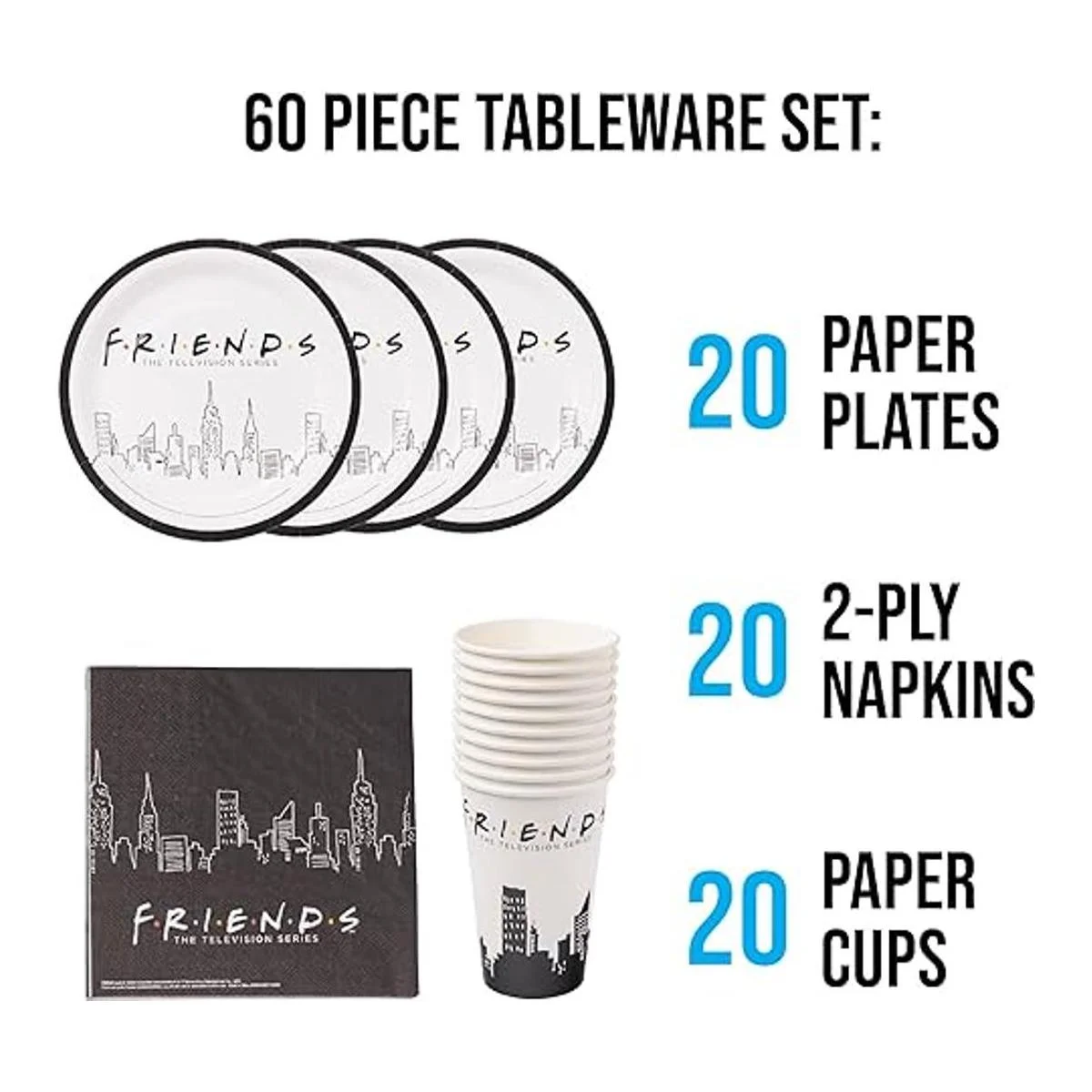 Silver Buffalo Friends New York Skyline Juego de platos de papel para fiestas, 60 piezas