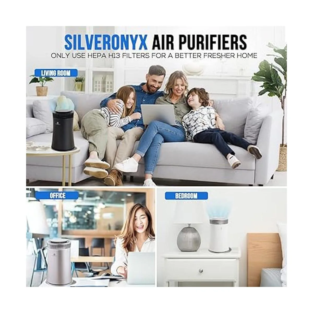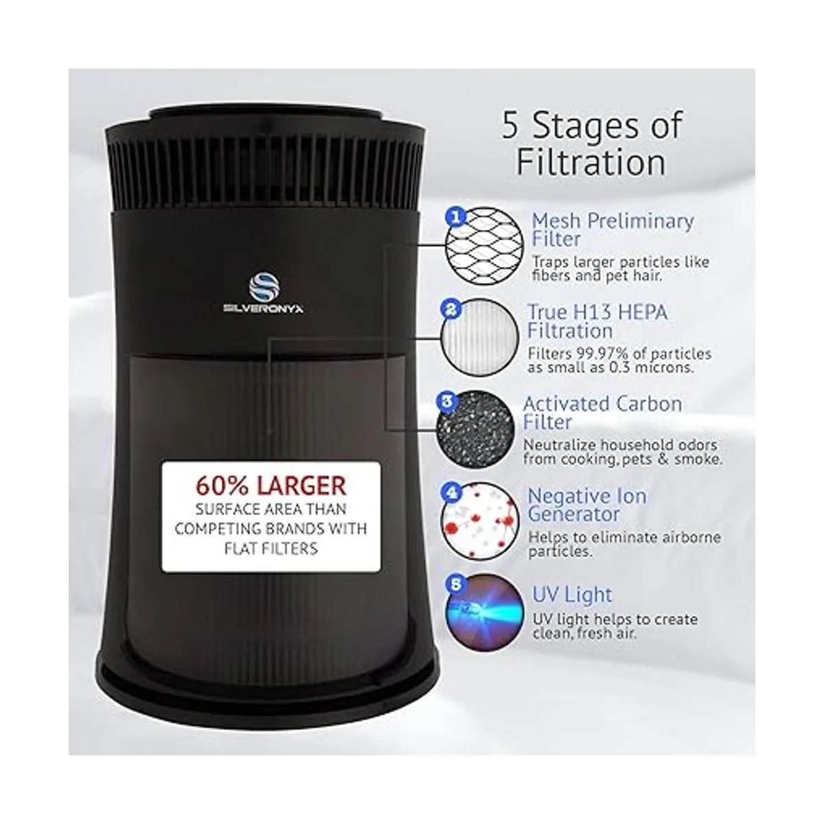 SILVERONYX Purificadores de aire para habitación grande, limpiador de filtro HEPA H13 para alergias, humo, elimina el 99.97 del polvo, polen, removedor de olores de caspa de pelo de mascotas, modo de sueño silencioso para el hogar, dormitorio, negro de 5 velocidades