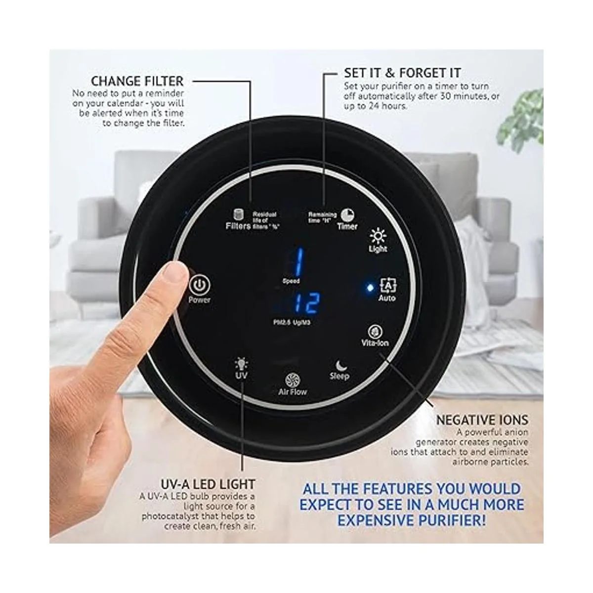 Ionizador de aire limpio: el purificador de aire SilverOnyx Hepa con ionizador, luz UV y filtro de carbón activado; las tecnologías de purificación de aire más sofisticadas para el aire más fresco; un sensor de 2.5 pm materia de partículas ajusta automáticamente el flujo de aire para garantizar un aire de alta calidad constante