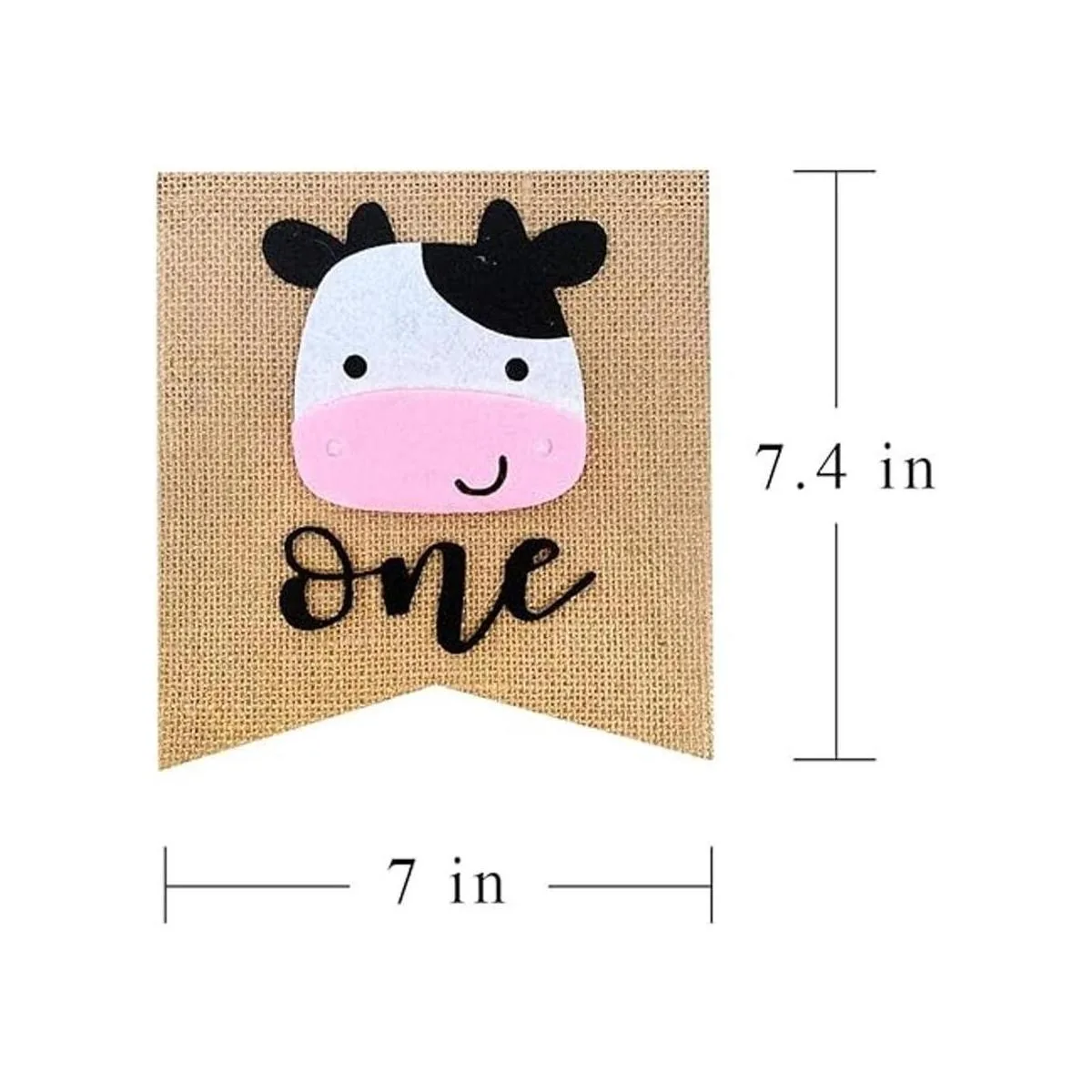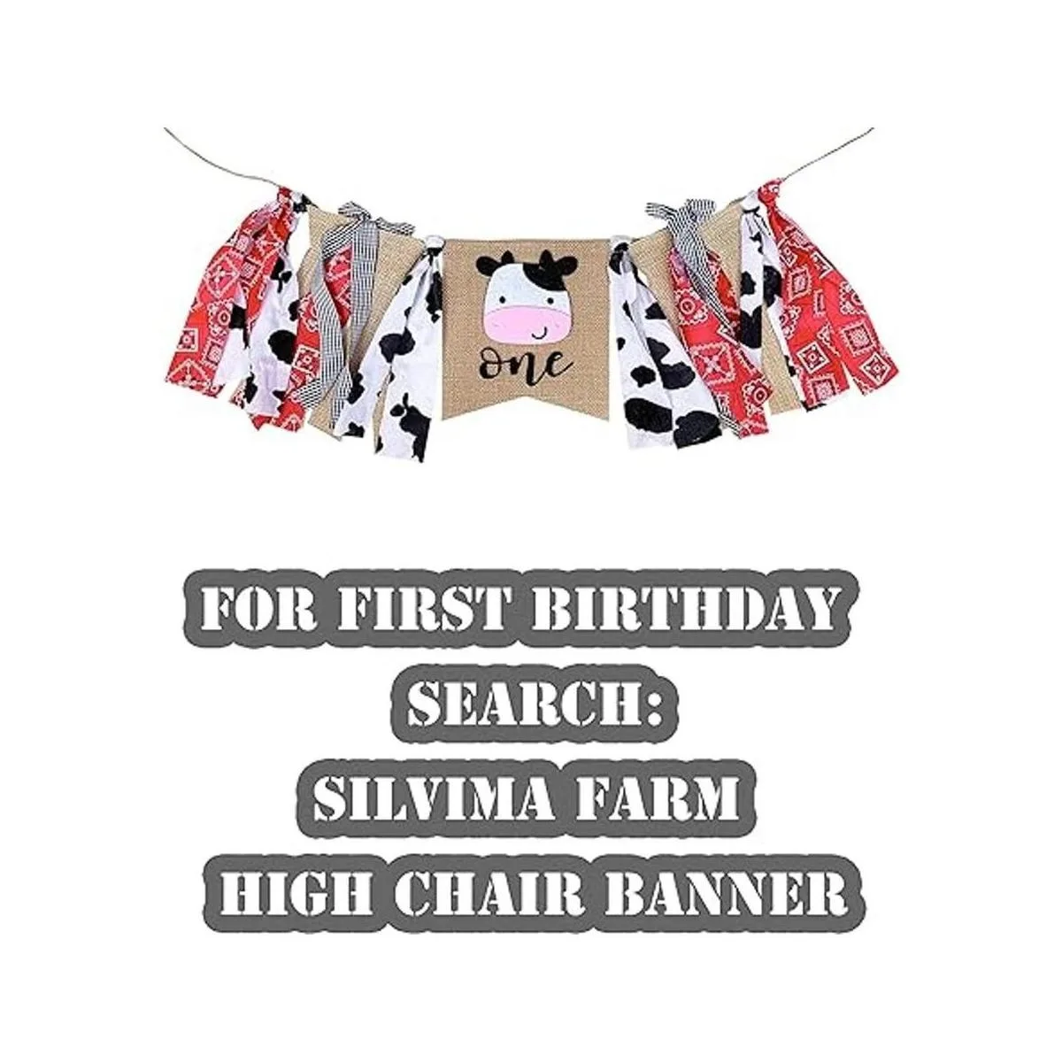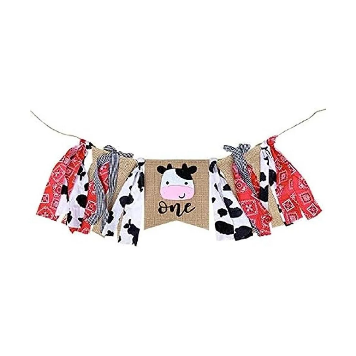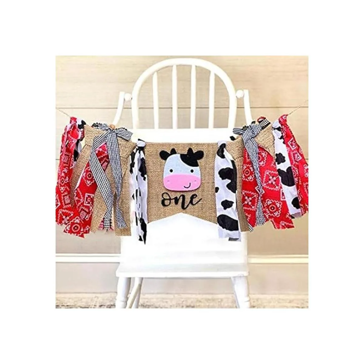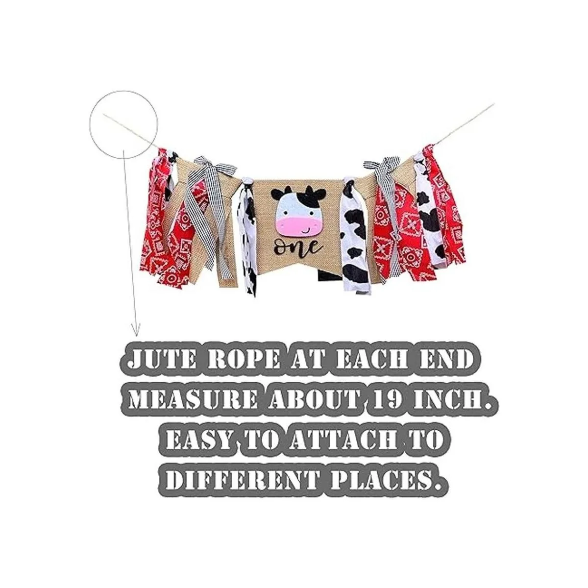 Tamaño perfecto: la bandera central de vaca mide aproximadamente 7.1 x 7.1 in y las bridas miden 9.4 in de largo, cordel extra en cada extremo para colgar medidas aprox. 19 pulgadas. Esta pancarta para trona de granja será una gran adición a la decoración de tu fiesta de primer cumpleaños.